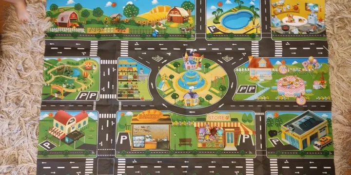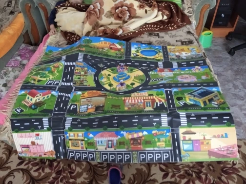 Заказала 24.01..Пришло 16.02..Задумка супперская..ребенку будет интересно..коврик..если его можно так назвать-яркий..интересный..большой..но качество материала..из которого он сделан..оставляет желать лучшего..голимая клееночка..легкая..с заломами..пыталась отпарить по изнаночной стороне..чуть выровнялось..но..все равно это какая-то бумажная тряпочка..под низ ..нужна какая-то основа..если бы сделать его из силикона..было бы замечательно..Звезды за быструю доставку не снимаю..но цена ему рублей 100-150..но никак не 373-это очень дорого для его качества