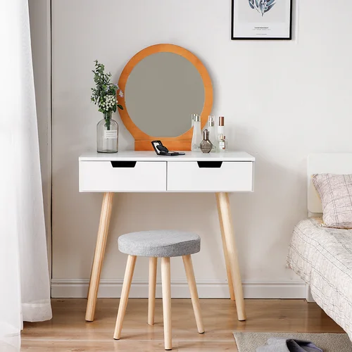 4. Туалетный столик оснащен высококачественными ножками из МДФ (уровень E1) и массива дерева, что очень устойчиво и элегантно;