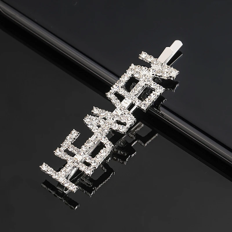 2019 Последняя мода letter word стразы заколка для волос с кристалл...