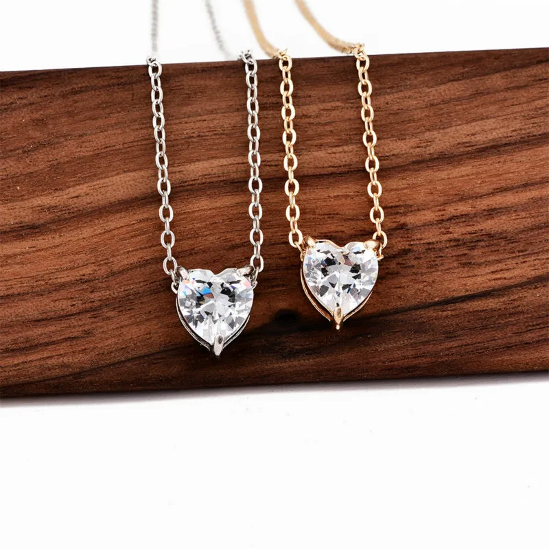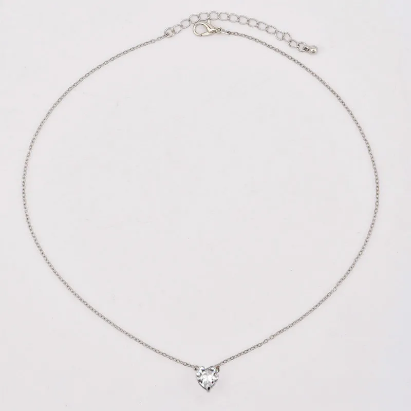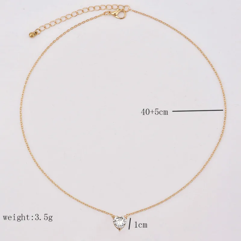 Weight5g Gold Silver Chain Crystal Love Heart Choker Necklace