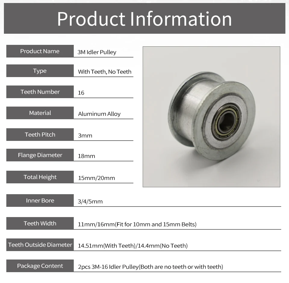 Шкив холостого хода HTD3M 24T 25T 26T 1116 мм, Ширина ремня, подшип...