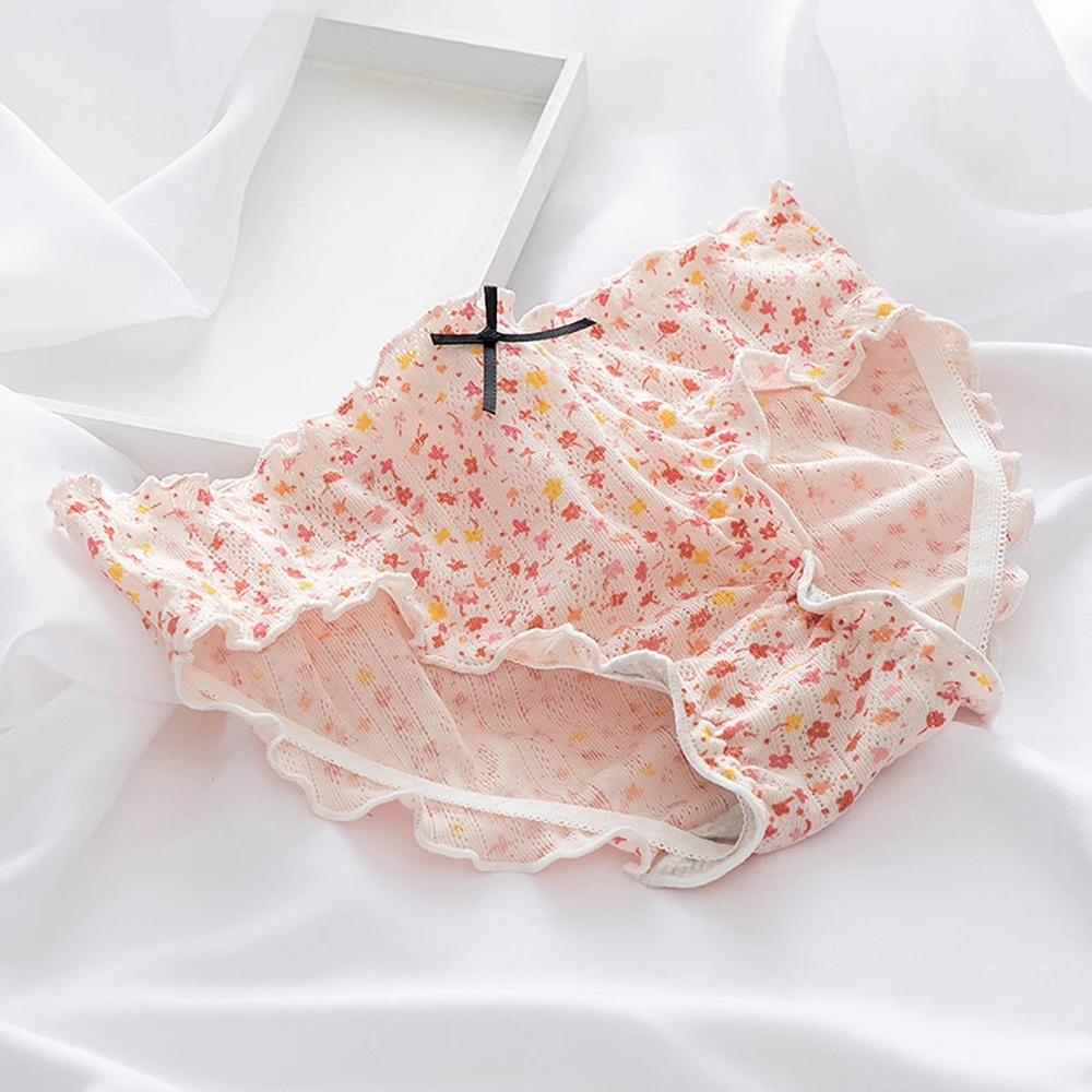 Женские хлопковые трусики, сетчатые трусики со средней талией и оборками