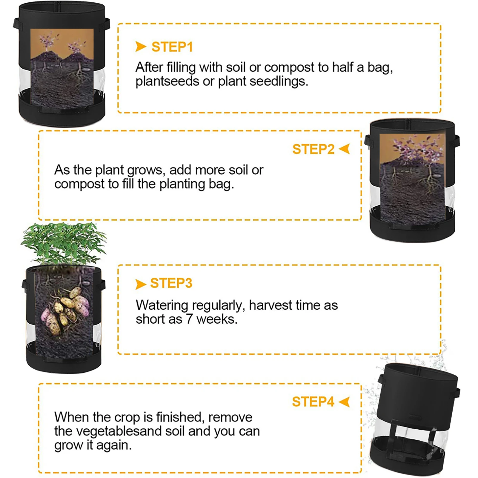 1. 1. Средняя часть мешка для картофеля прозрачная, что позволяет лучше наблюдать за корнями и почвой растения. Он может не только проверить, является ли растение зрелым, но и легко собрать растение через окно, не копая глину.2. 2. Двойной слой имеет хорошую воздухопроницаемость, которая может предотвратить появление корней от намотки, уменьшить риск трансплантации, и может удалить избыток воды, чтобы способствовать росту и урожаю овощей.3. 3. Изготовлено из экологически безопасных материалов, складывается, моется и используется в качестве мешков для хранения грязной одежды, упаковочных инструментов и т. д.4. 4. Прочная ручка позволяет легко перемещаться. Пакеты для картошки очень подходят для патио, небольших садов, балконов, соляриев и любых внутренних/наружных помещений.5. 5. Очень подходит для картофеля, лука, таро, Редьки, моркови и других овощей.Описание:1. Средняя часть мешка для картофеля прозрачная, что позволяет лучше наблюдать за корнями и почвой растения. Он может не только проверить, является ли растение зрелым, но и легко собрать растение через окно, не копая глину.2. Двойной слой имеет хорошую воздухопроницаемость, которая может предотвратить корешки от намотки, уменьшить риск трансплантации, и может удалить избыток воды, чтобы способствовать росту и урожаю овощей.3. Изготовлен из экологически безопасных материалов, складной, моющийся и используемый в качестве мешков для хранения грязной одежды, упаковочных инструментов и т. д.4. Прочная ручка позволяет легко перемещаться. Пакеты для картошки очень подходят для патио, небольших садов, балконов, соляриев и любых внутренних/наружных помещений.5. Очень подходит для картофеля, лука, таро, редиски, моркови и других овощей.Спецификация:Наименование: мешок для посадки картофеляМатериал: Нетканая тканьЦвет: черныйДиапазон использования: посадка картофеляЕмкость: большой размер (35D * 45H) около 43 литров/10 галлоновОсобенности: устойчивость к коррозии, прочный и долговечный, не легко деформируетсяУпаковочный лист:Мешок для посадки картофеля * 1