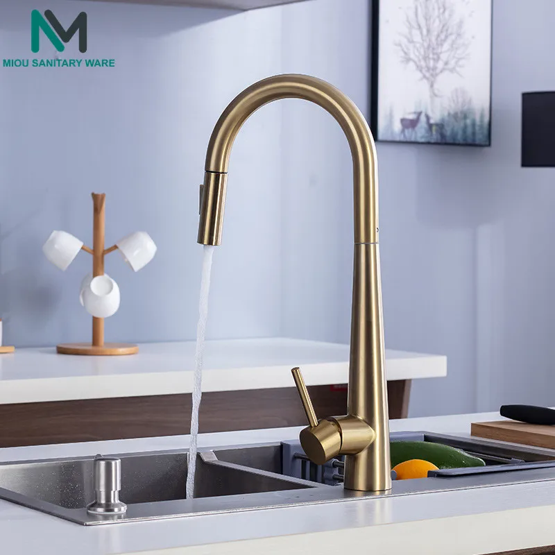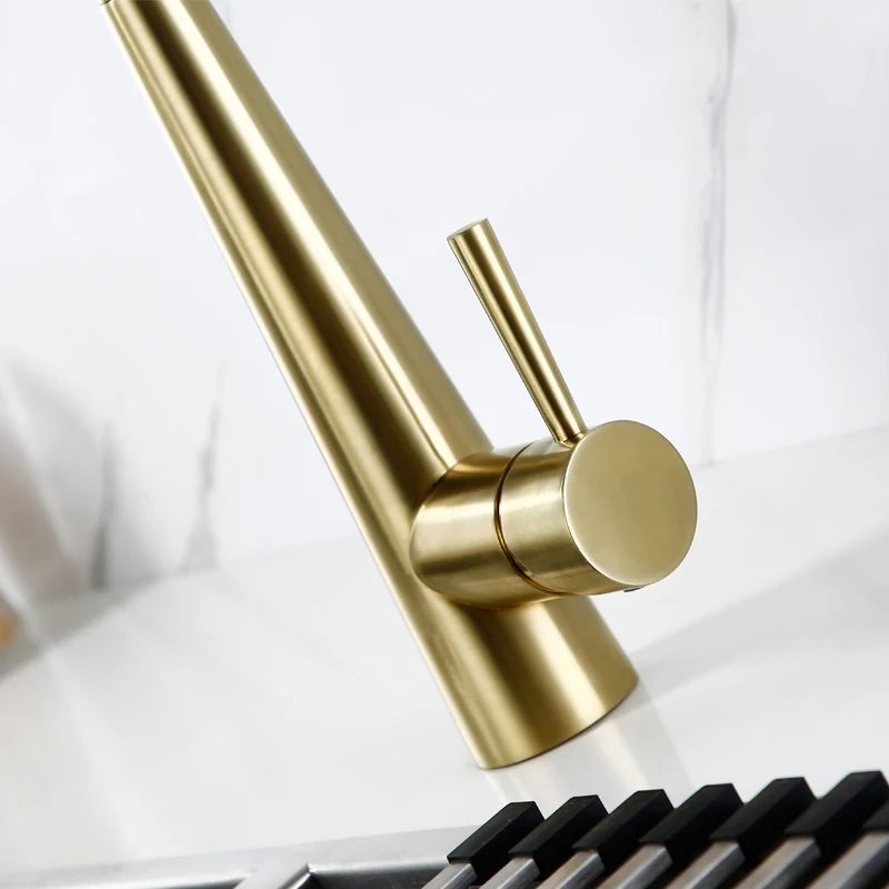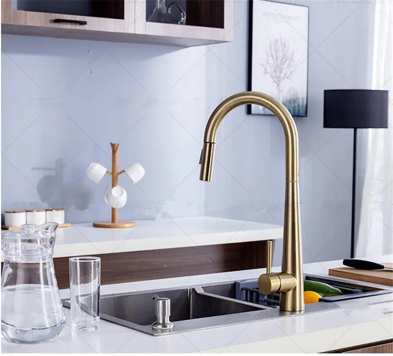 Выдвижной кухонный кран, смесители для раковины, латунный кухонный кран, вращающийся матовый золотой кран для горячей и холодной воды