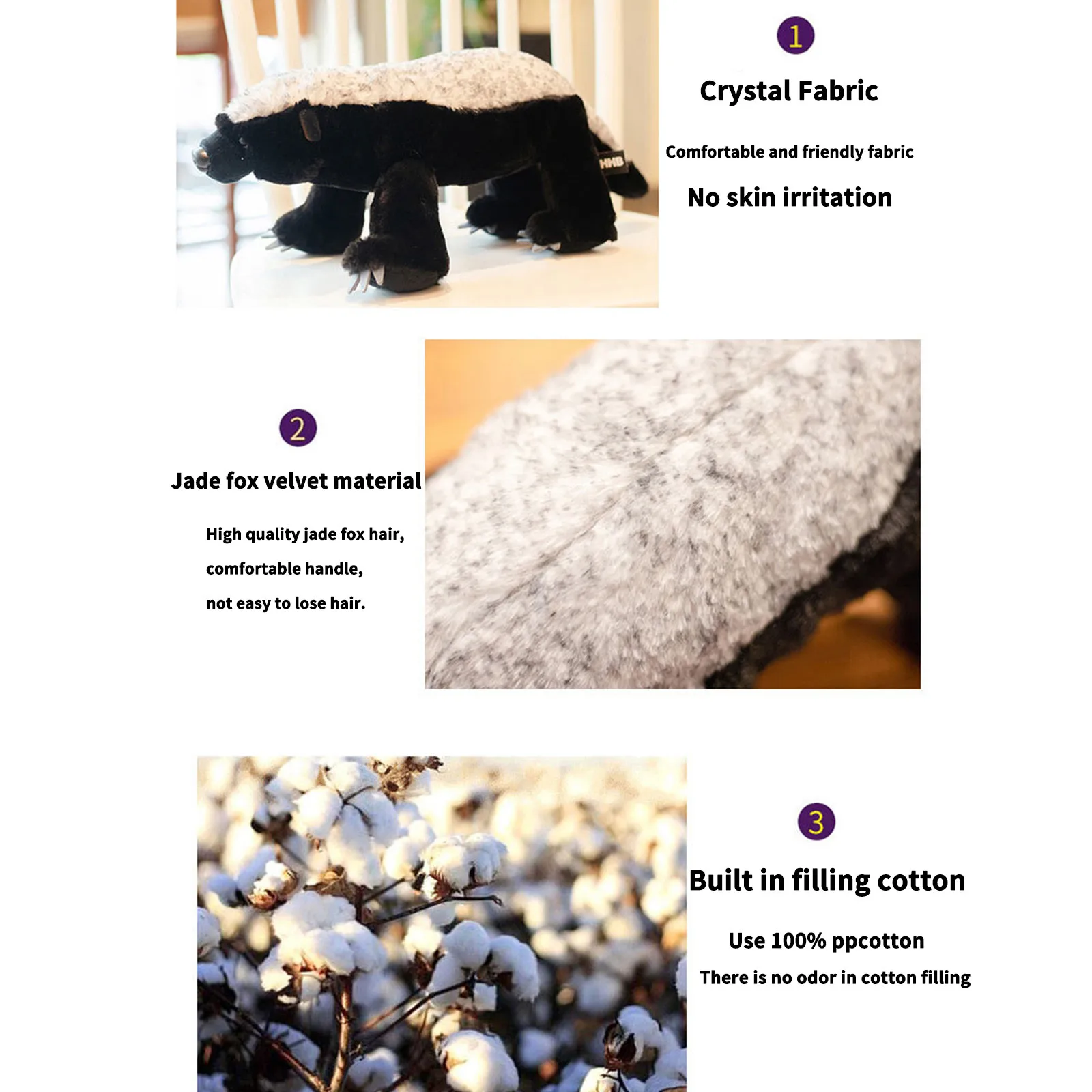 Категория: плюшевая кукла Категория моделирования: животное Материал наполнения: полипропиленовый хлопок Классификация плюша: супер мягкий короткий плюш Цвет: черный и белый