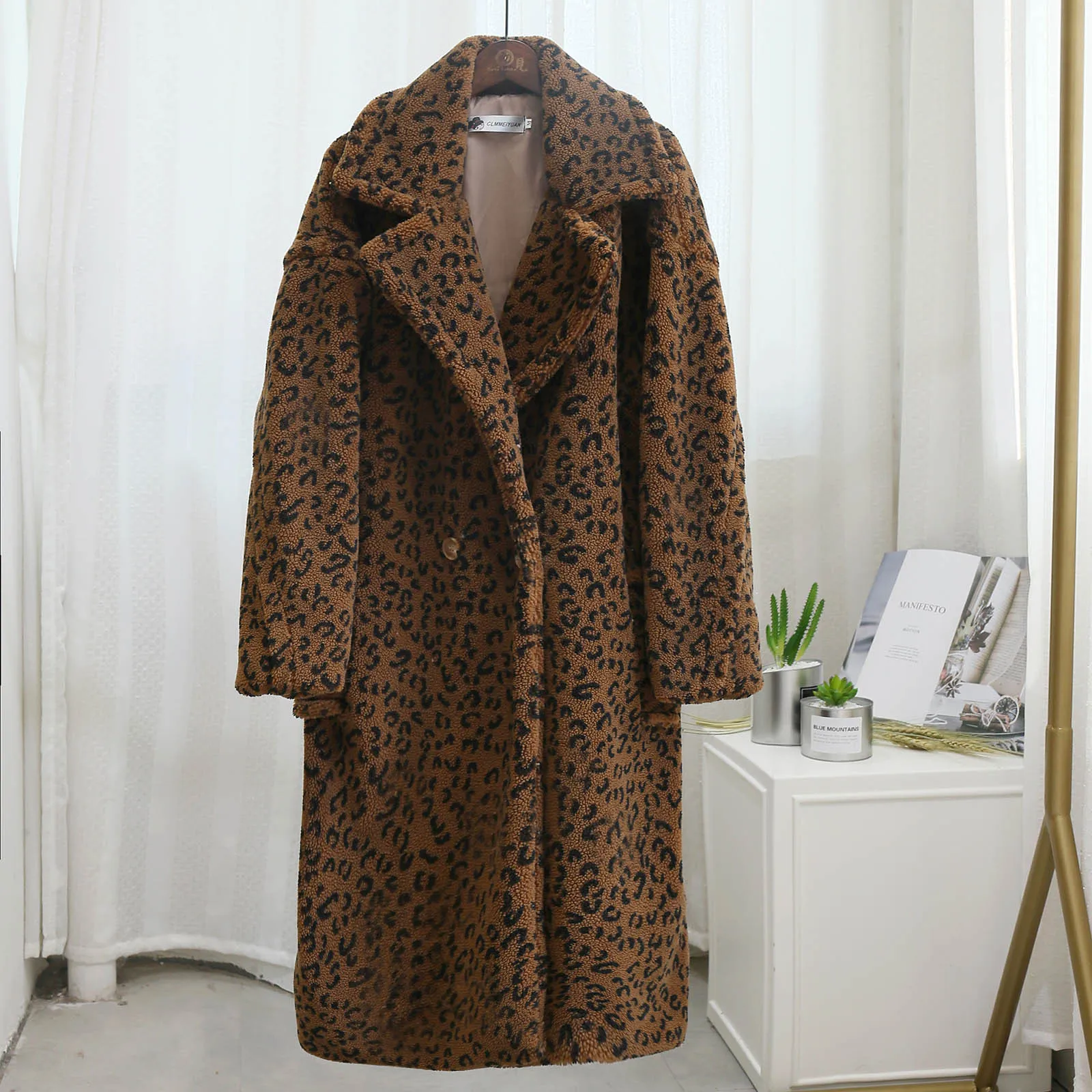 Модное женское зимнее пальто из смесовой шерсти с леопардовым принтом, теплое пуховое пальто, верхняя одежда, куртка, ветровка, пальто, пальто в Корейском стиле