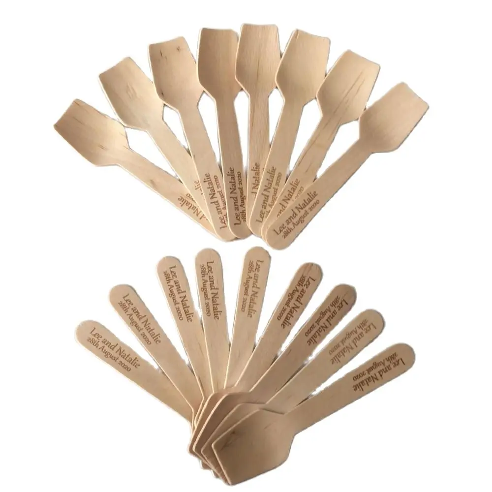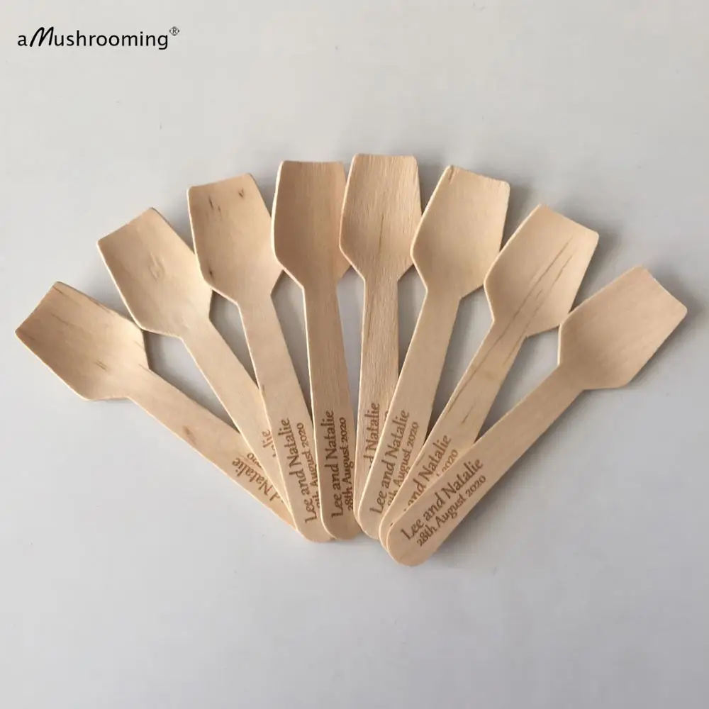 Одноразовая деревянная ложка x500 с плоским краем, десертные ложки, персонализированные столовые приборы, мороженое, пирожное, вечевечерние НКА, барбекю, кафе