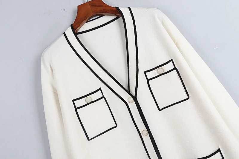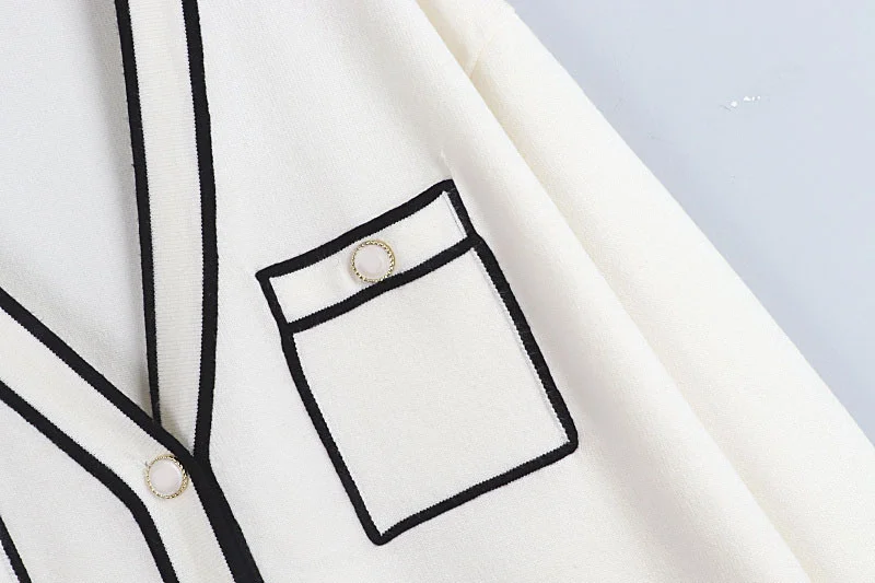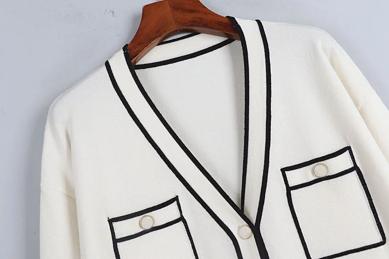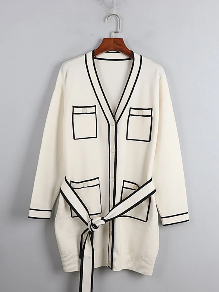 Однобортный Кардиган DEAT, Повседневный Кардиган контрастных цветов с V-образным вырезом, длинными рукавами, поясом и карманами, осень-весна 2022