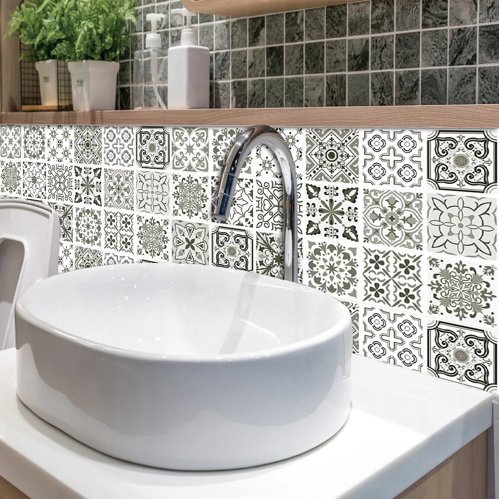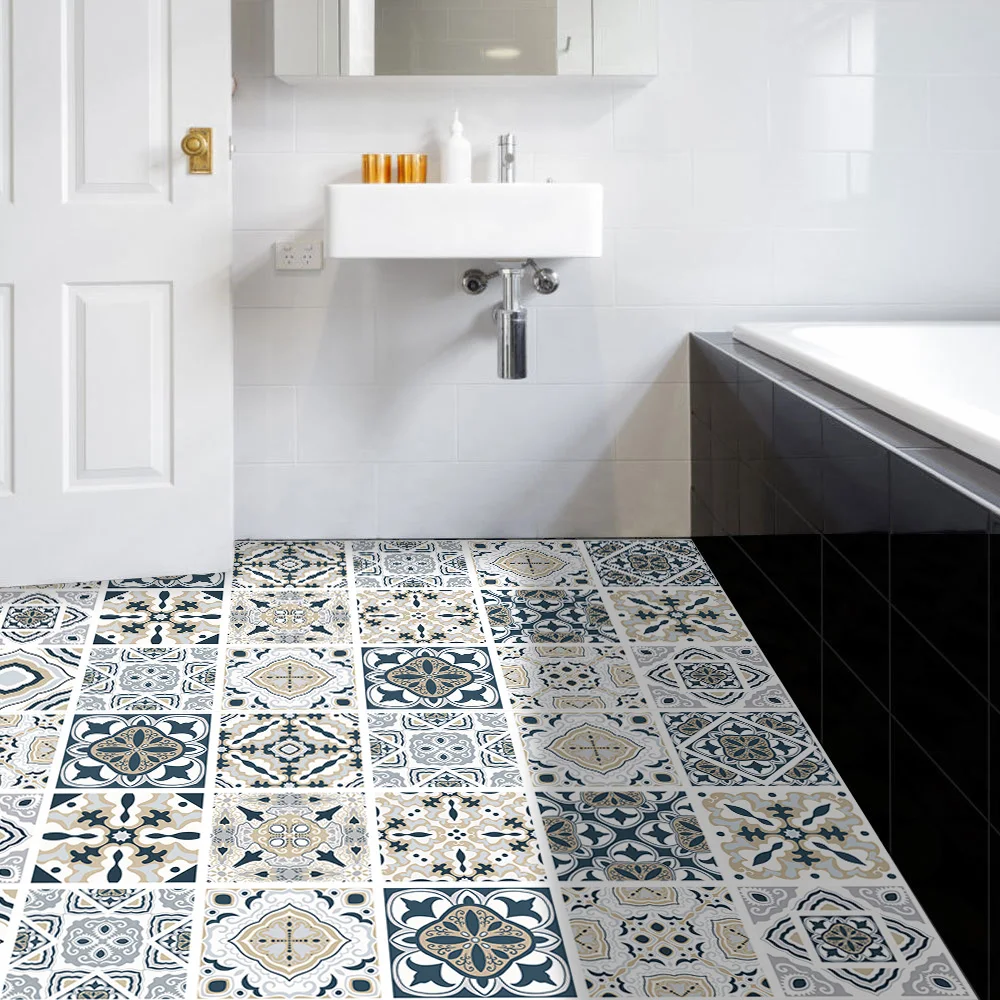 Наклейка для пола, матовая, ПВХ, серый узор, настенный Декор ванной комнаты, 50*100 см * 1 шт., водостойкая, износостойкая
