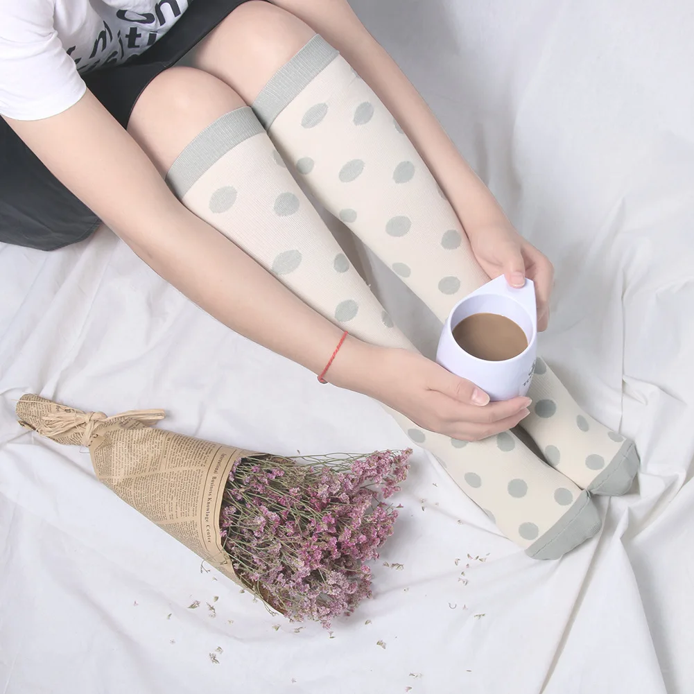 Компрессионные носки в полоску, цветные точки, длинные носки для бе...