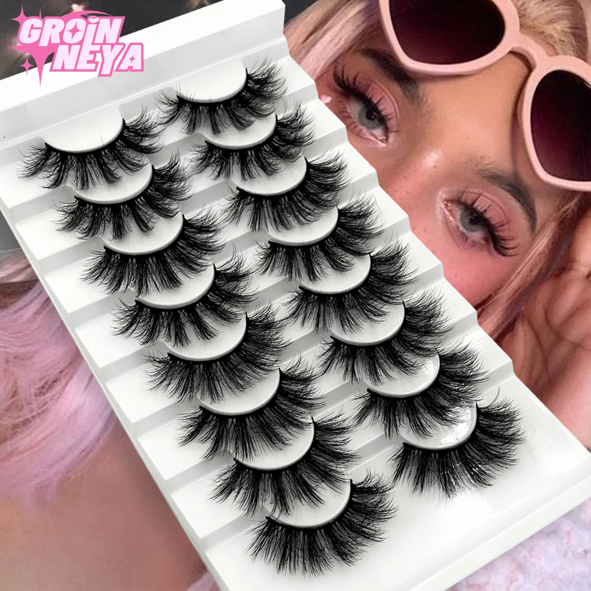 3D норковые ресницы GROINNEYA 58 пар, натуральные накладные ресницы, пушистые мягкие тонкие объемные ресницы, Драматические Длинные Накладные ресницы с пересечением, макияж