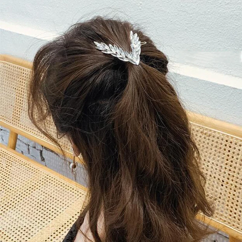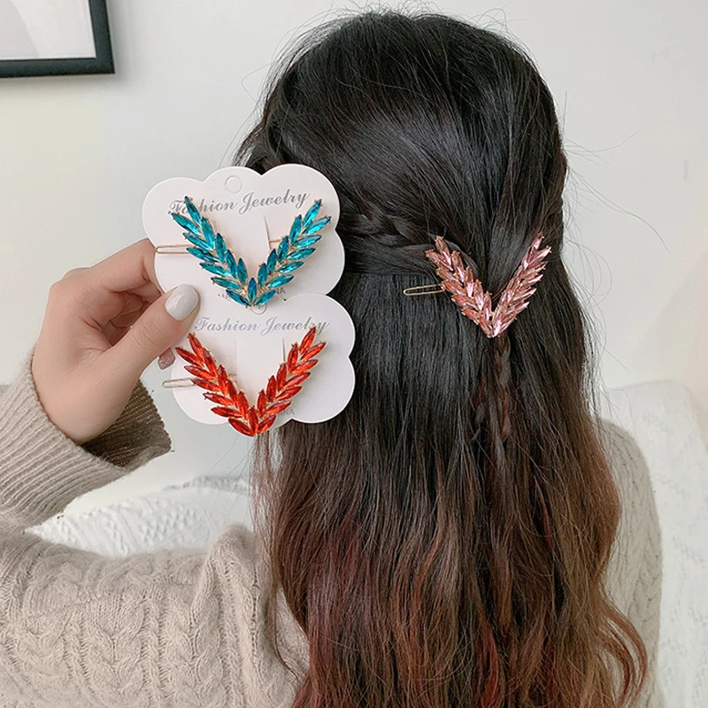 Заколка для волос женская, в стиле ретро, застежка-лягушка с имитацией кристаллов, V-образная, элегантная шпилька для волос
