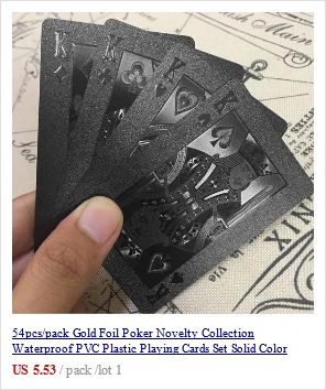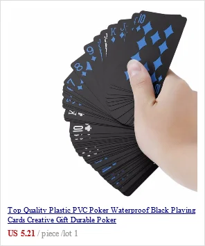 Особенности:Интересные покерные карты, идеально подходят для игры в игры.Отличный выбор для друзей, казино и вечерние.Он очень прочный и используется для длительного времени.Эта игральная карта подходит для детей и взрослых.Водонепроницаемый дизайн, не беспокойтесь о промокании.Описание:Изготовлен из ПВХ-материала, лучше, чем оригинальная бумажная игральная карта.Классный и модный дизайн, это хорошая игра между вами и вашими друзьями.Спецификация:Размер: 63*88*0,3 ммМатериал: ПВХ пластикЦвет: черныйКоличество: 54Посылка включает в себя:54 x игральные картыПримечания:Из-за разницы между различными мониторами изображение может не отражать фактический цвет изделия. Мы гарантируем, что модель реального изделия не отличается от представленной на фото.