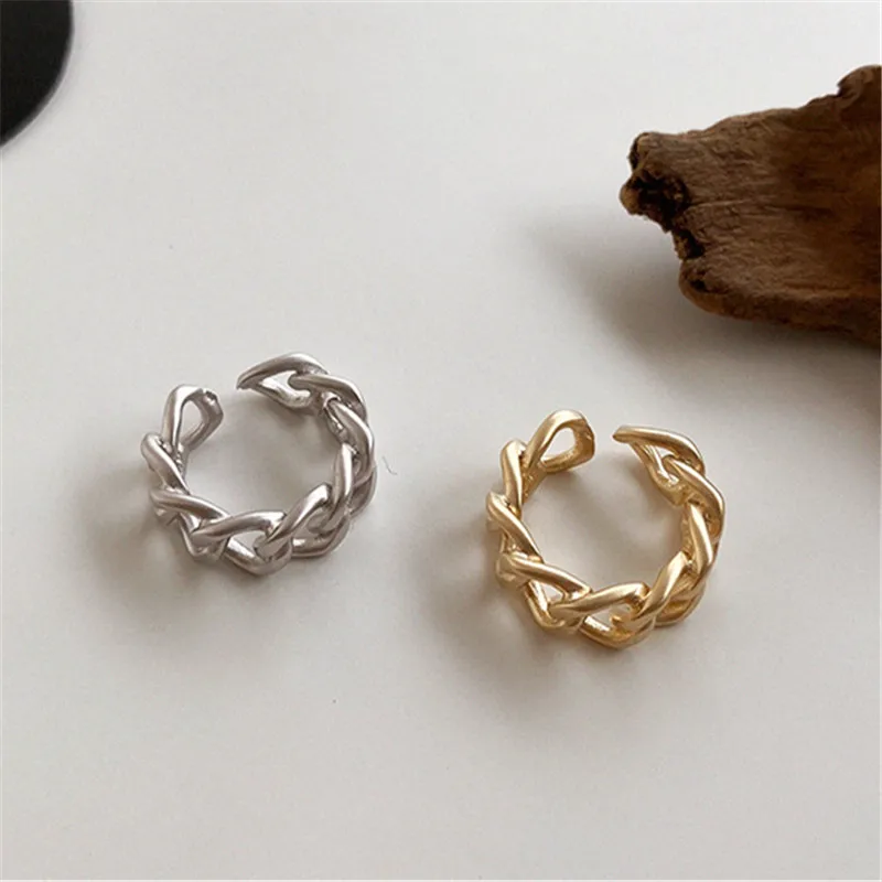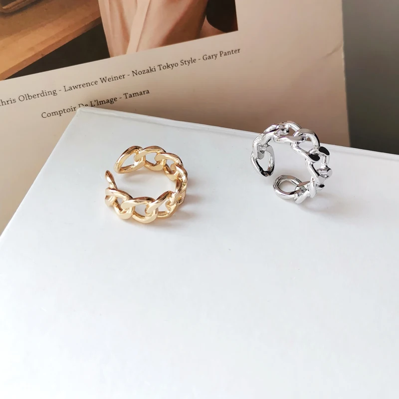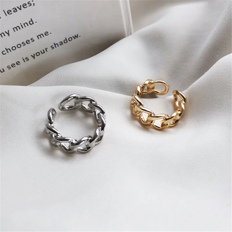 Модные открытые кольца из серебра 925 пробы золотого цвета с цепочк...