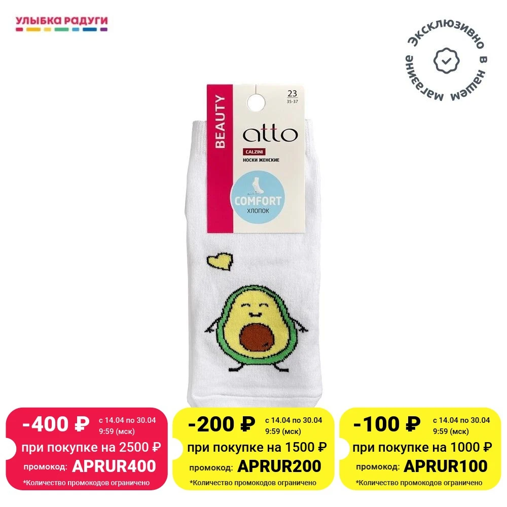 Женские носки ATTO " Авокадо " трикотажные , белые , р.23