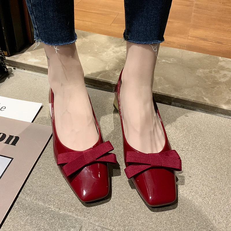 Туфли женские на низком каблуке, пикантные элегантные лоферы, без застежки, плоская подошва, красные, черные, 2021