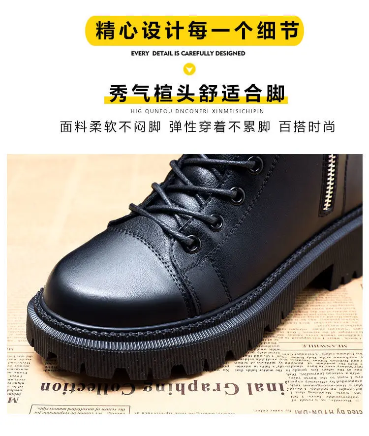 Женские ботинки-мартинсы на платформе, ботильоны на плоской подошве и боковой молнии, Осень-зима 2020