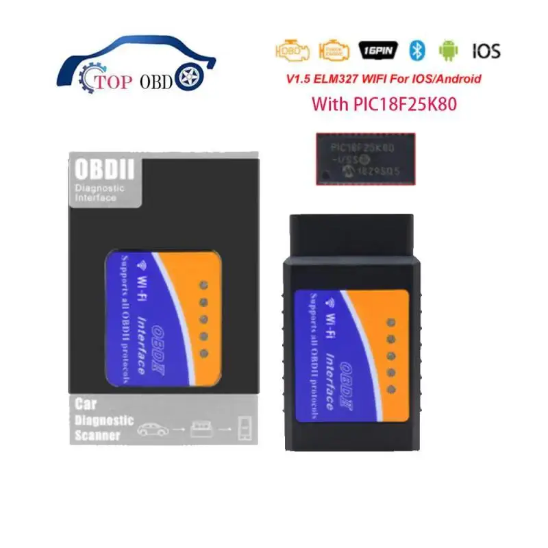 Считыватель кодов OBD2 ELM 327 V1.5 Wi-Fi Bluetooth PIC18F25K80 сканер elm327 obd Wi-Fi считыватель кодов для AndroidiOS OBD 2 адаптер Диагностика автомобиля