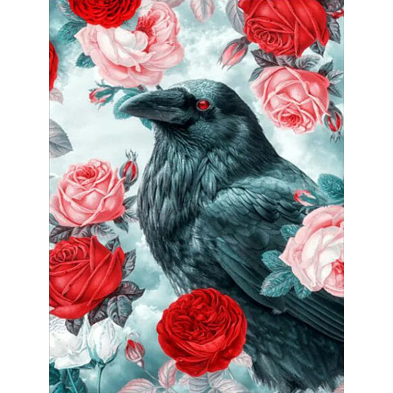 Алмазная живопись, животные, ворона, роза, 5D, полностью Алмазная вышивка своими руками, круглаяквадратная Алмазная инкрустированная мозаика, вышивка крестиком, искусство, подарок