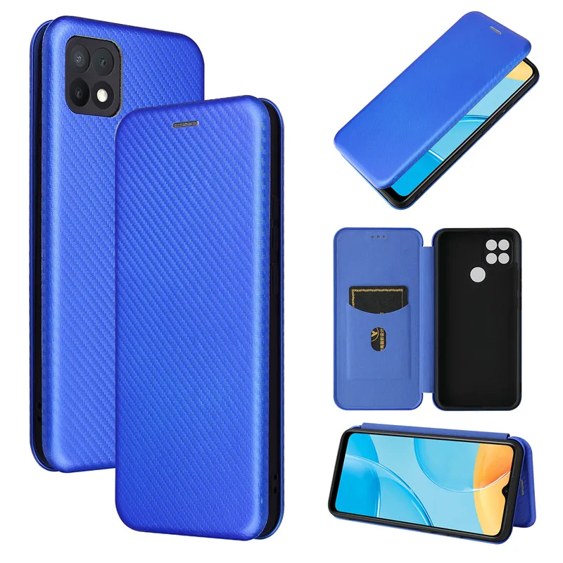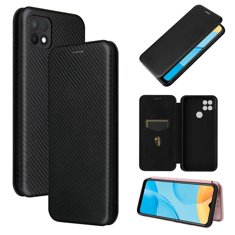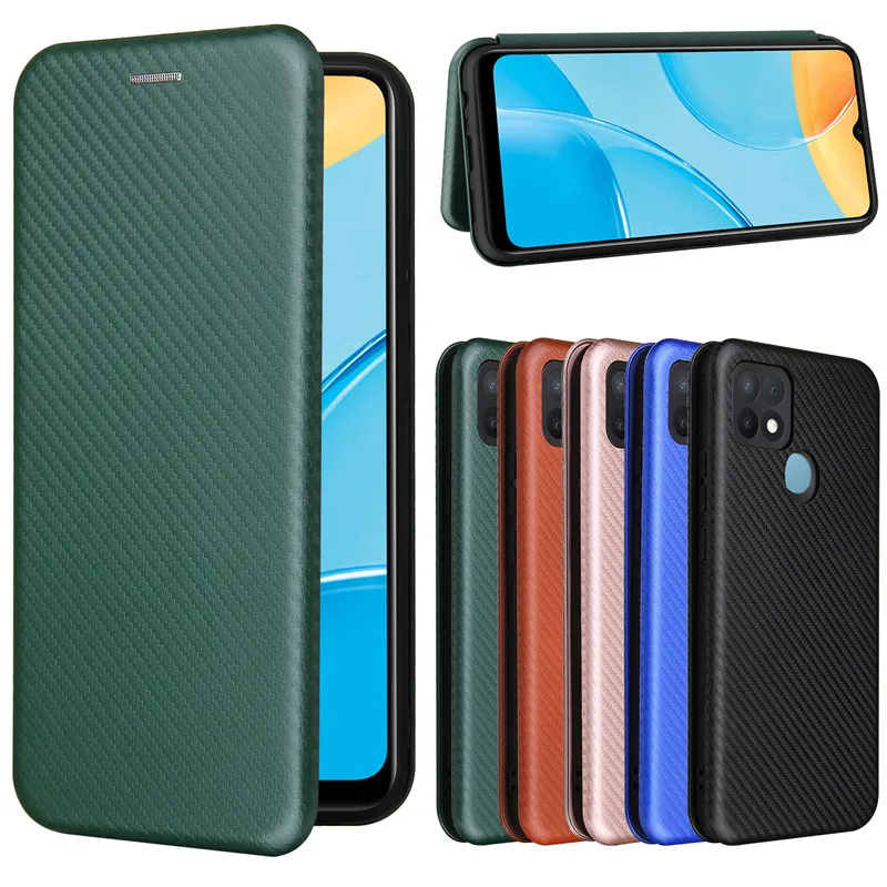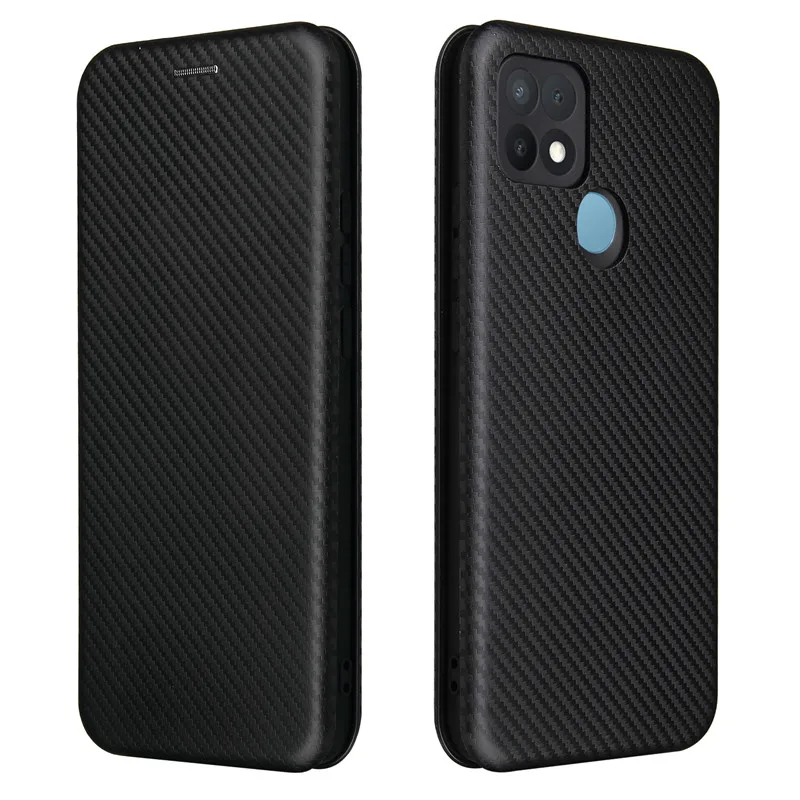 Для Oppo A15 чехол 6,52 дюймов углеродное волокно Флип кожаный чехол для Oppo A15 CPH2185 бизнес Магнитный кошелек слот для карт тонкий Чехол