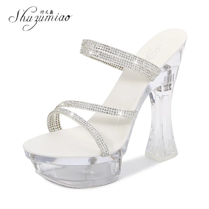 Женские шлепанцы на очень высоком каблуке 14 см, летние, прозрачные...