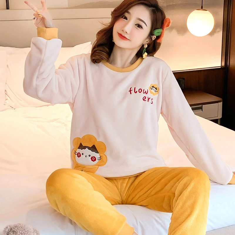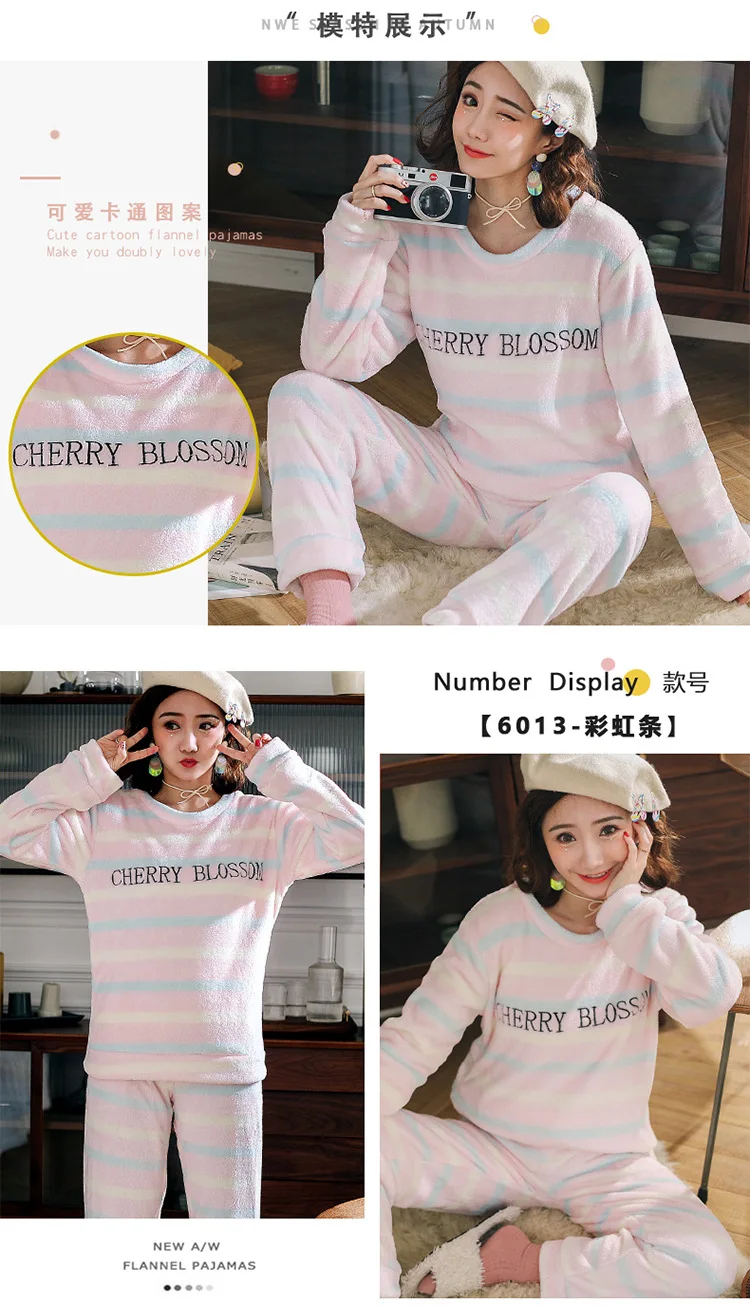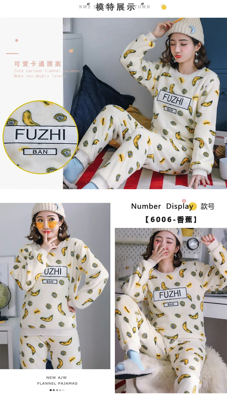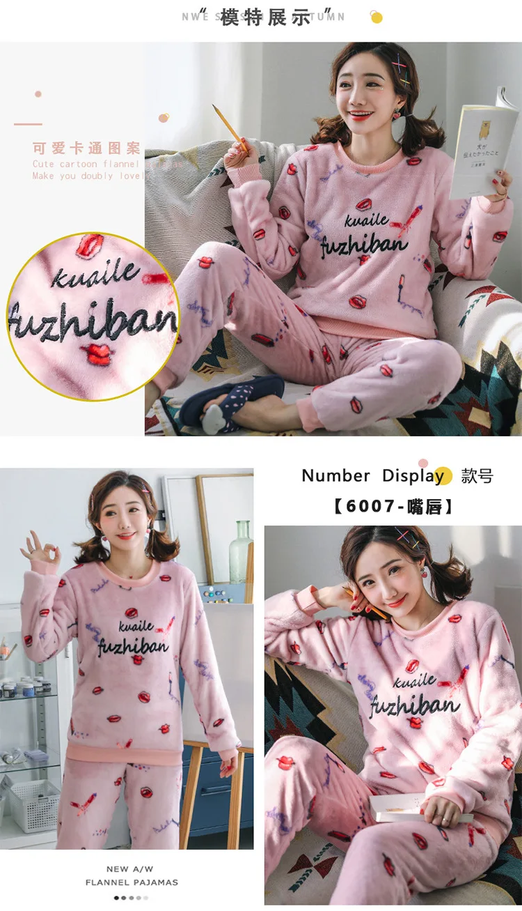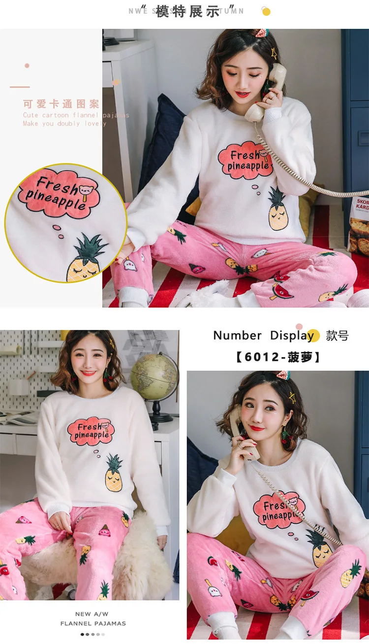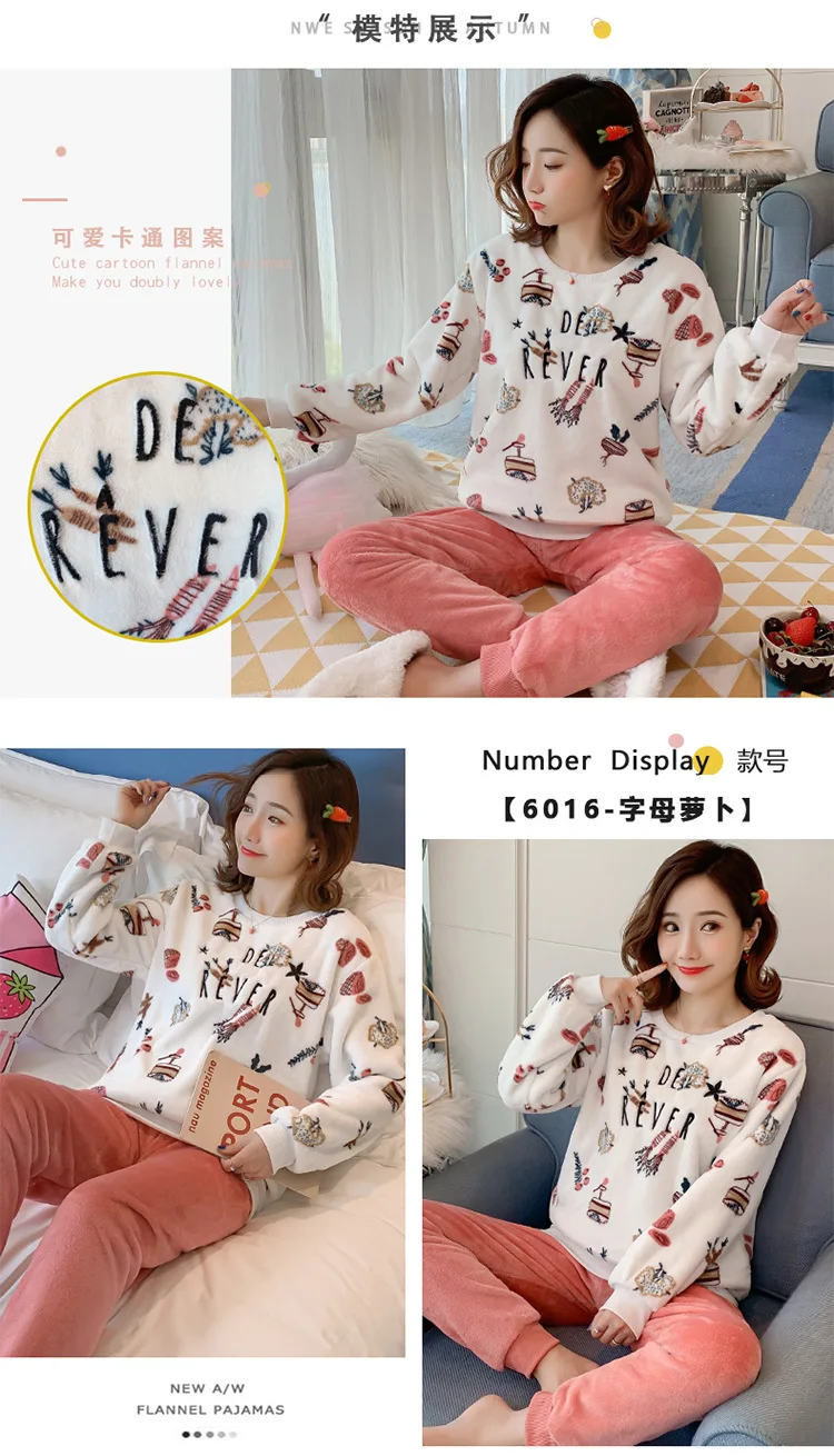 Новинка зимние теплые женские пижамные комплекты Толстая Коралловая бархатная пижама с длинным рукавом мультяшная Фланелевая пижама с животными женская одежда