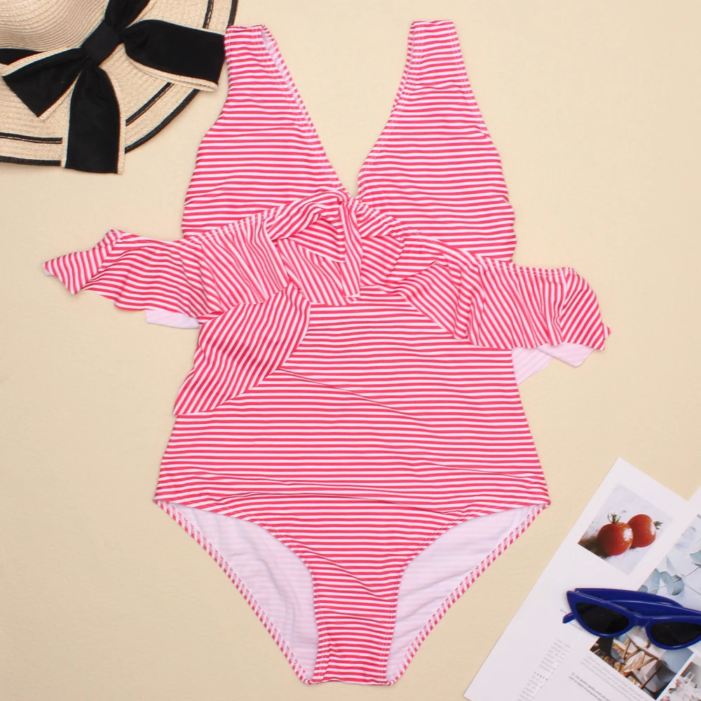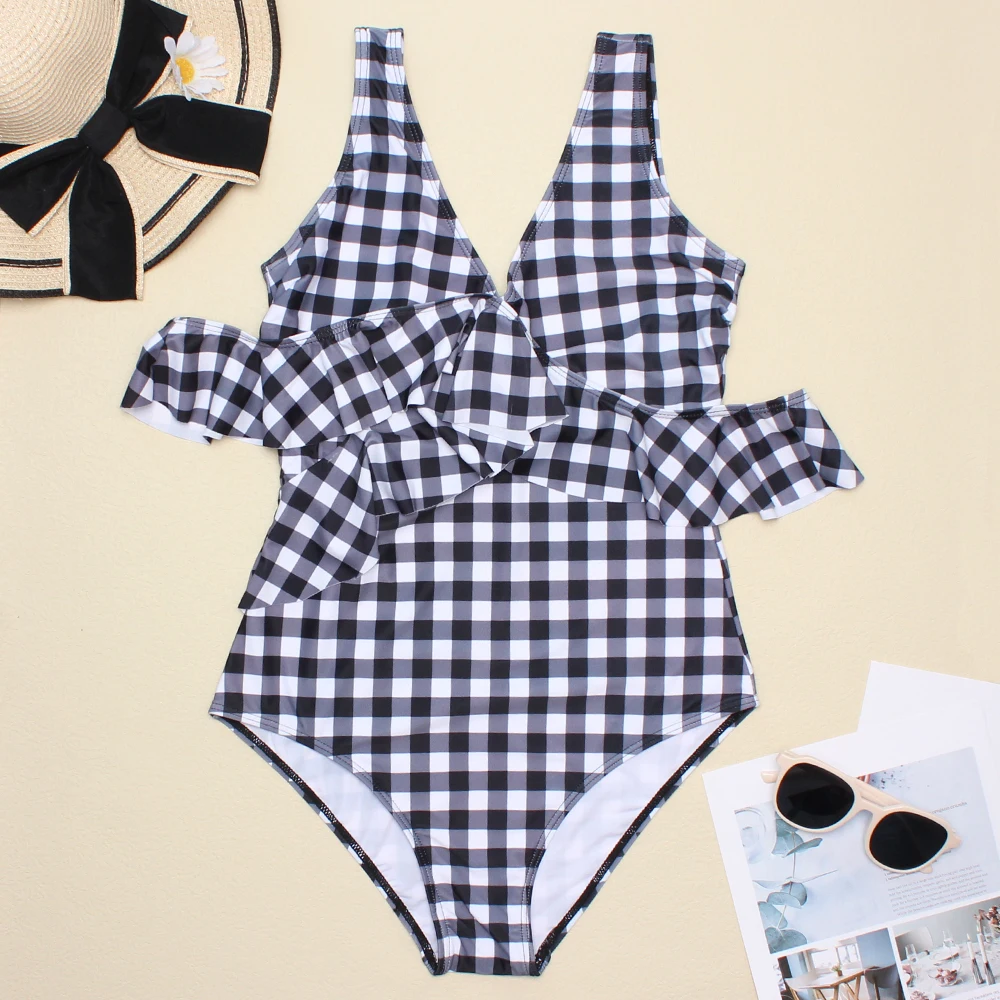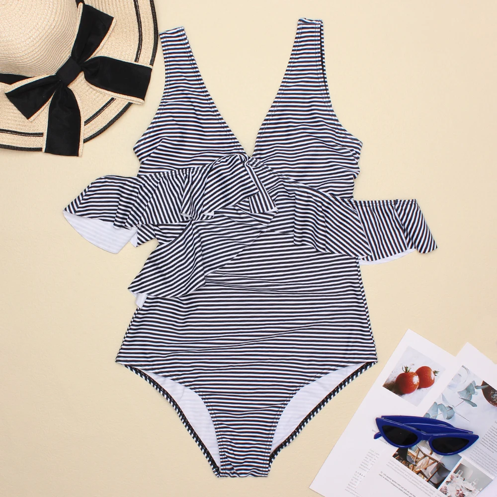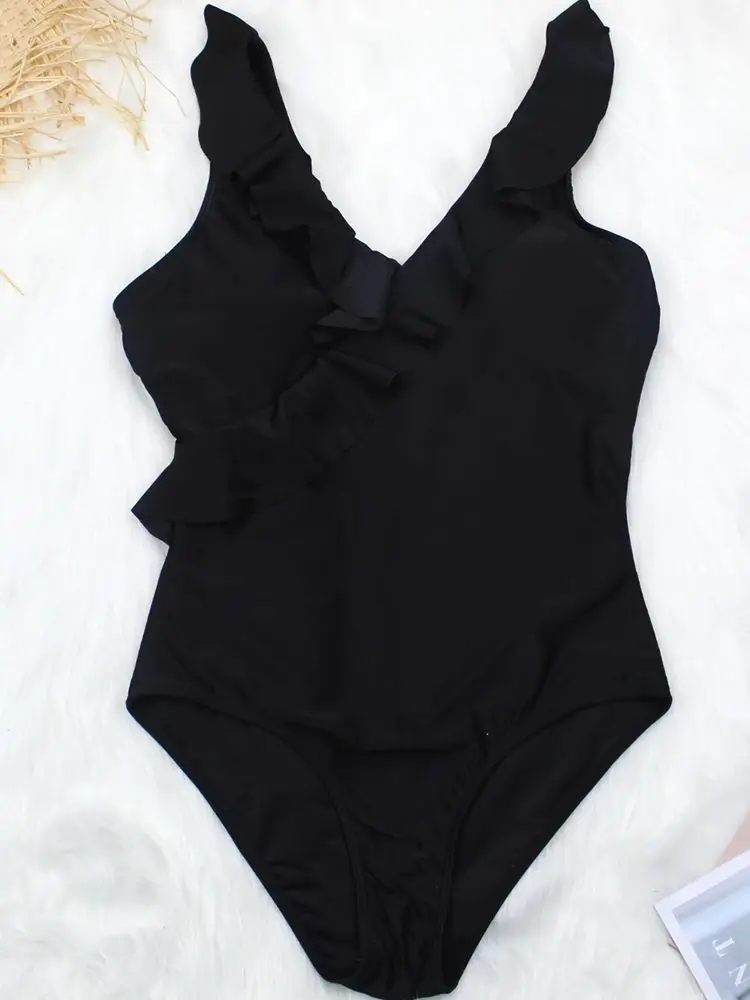 Винтажный слитный женский купальник с рюшами, черный купальник пуш-ап, бразильский облегающий боди с V-образным вырезом, летние пляжные купальные костюмы 2022