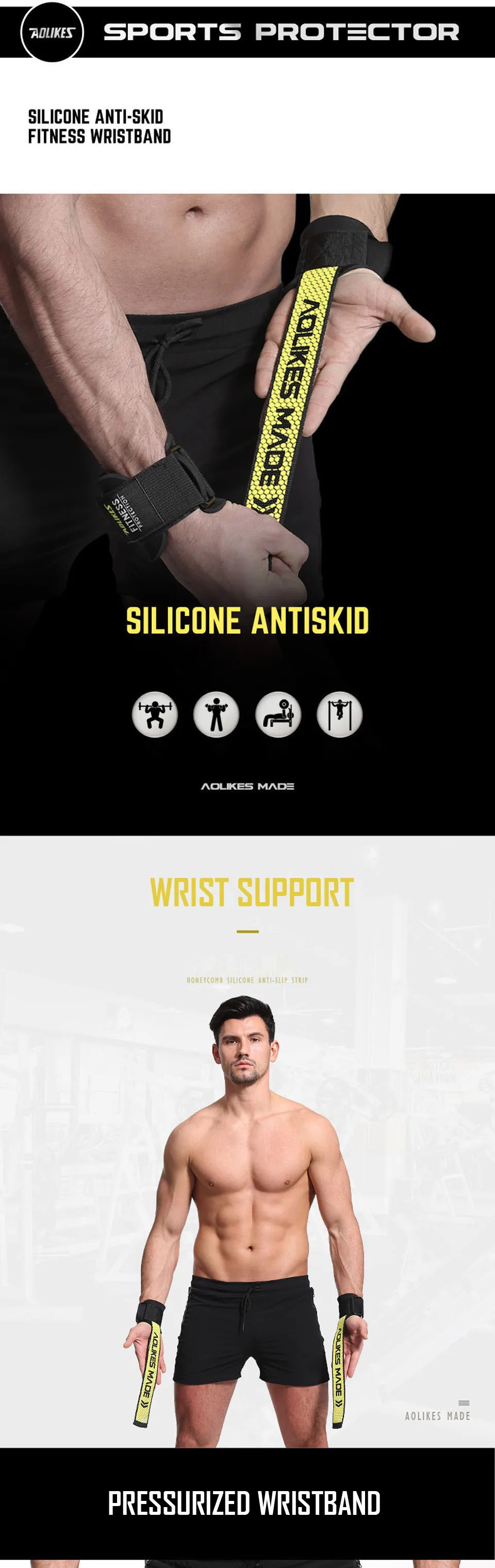 AOLIKES 1 пара Вес подъема ремешки на запястья длиной Фитнес бодибилдинг тренажерный зал Кроссфит подъемные ремни с Нескользящие гибкий гель ручка
