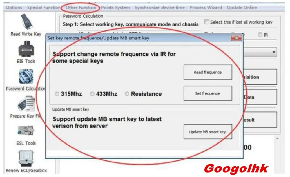 ВыберитеПрочие Функции->Набор ключей Удаленная частота/обновление MB смарт-ключ
