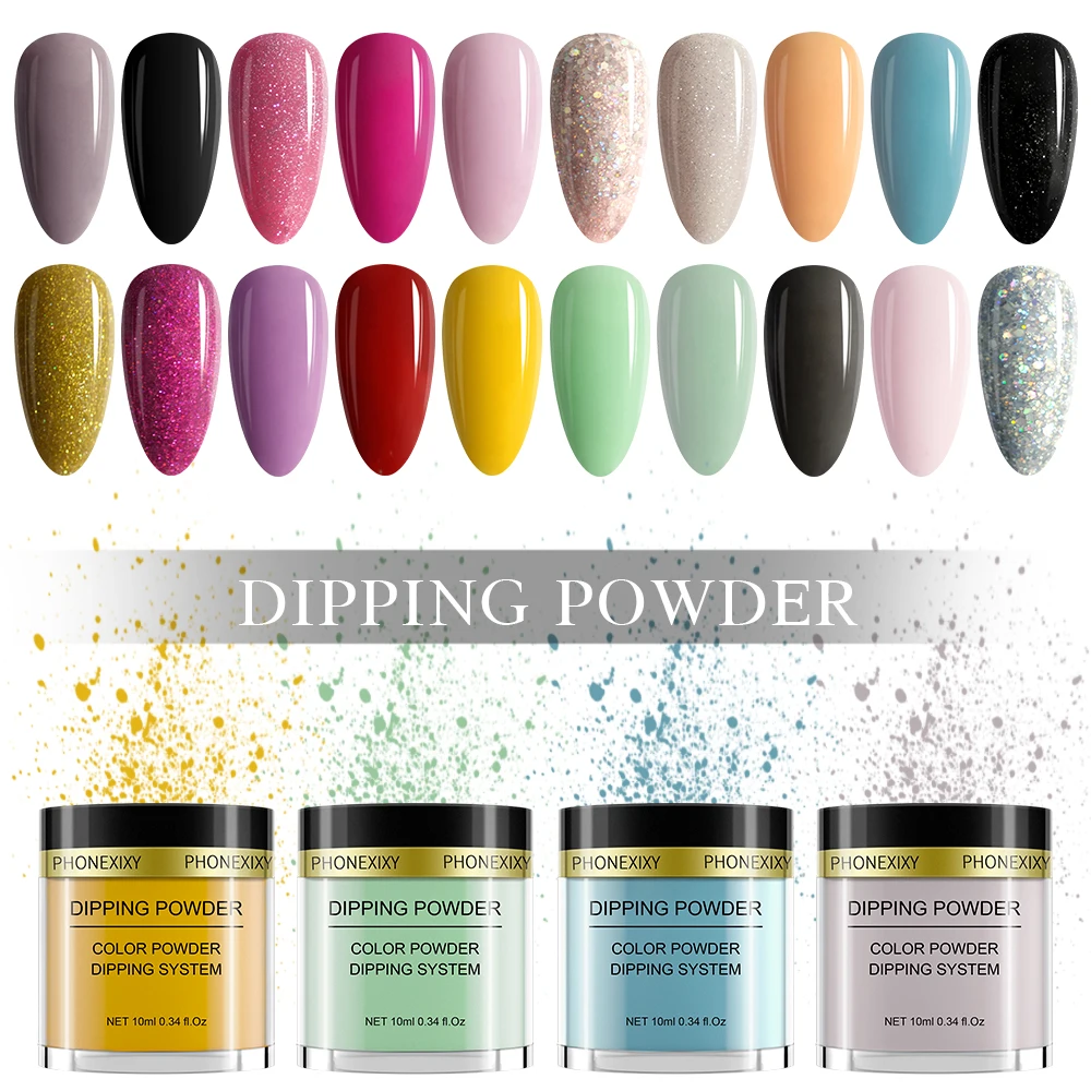 Пудра с блестками для наращивания ногтей Phoenixy, пудра для наращивания ногтей, для маникюра, блестки для нейл Арта (искусство украшения ногтей)