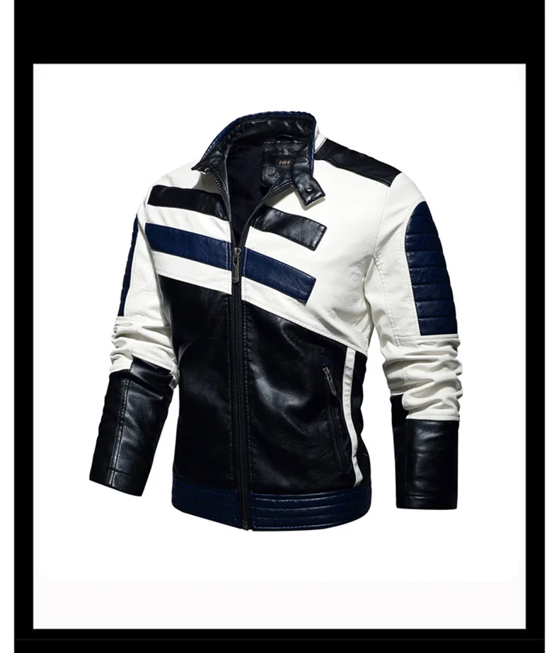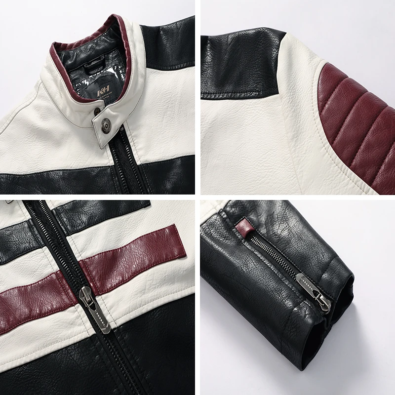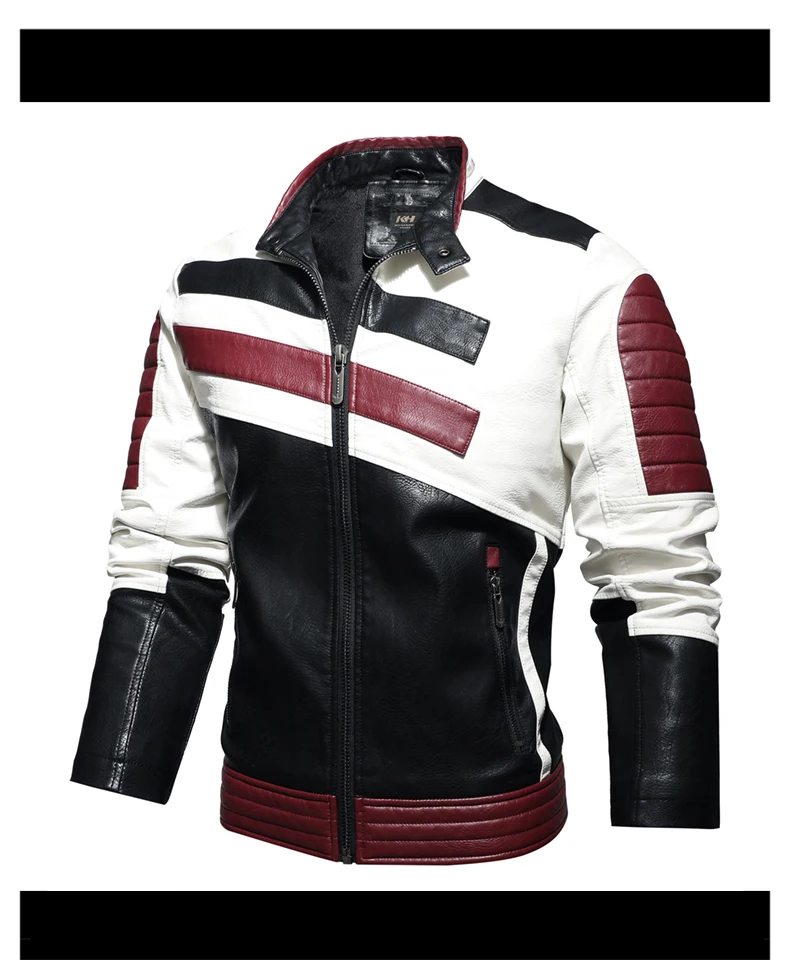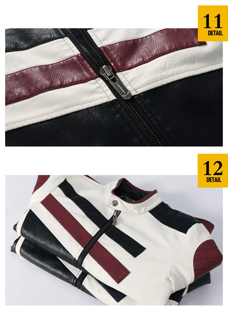 Мужская мотоциклетная кожаная куртка в полоску, куртка из искусстве...