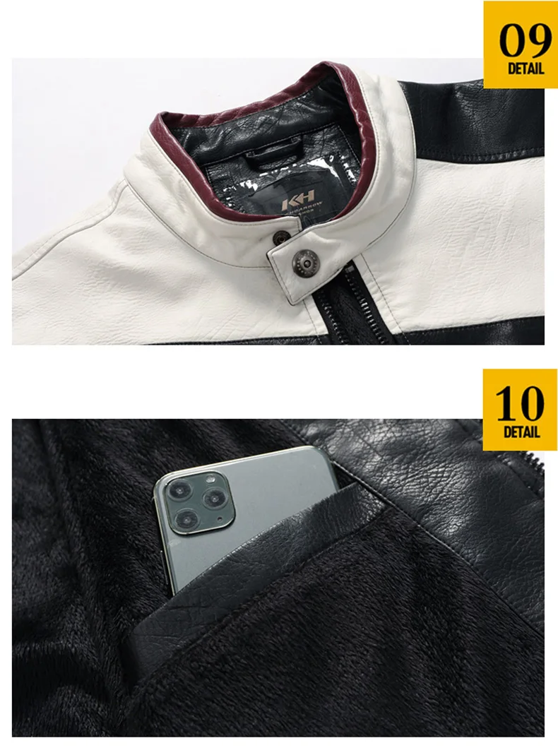 2021Men's флисовые байкерские Кожаные куртки простой Стиль со стояч...