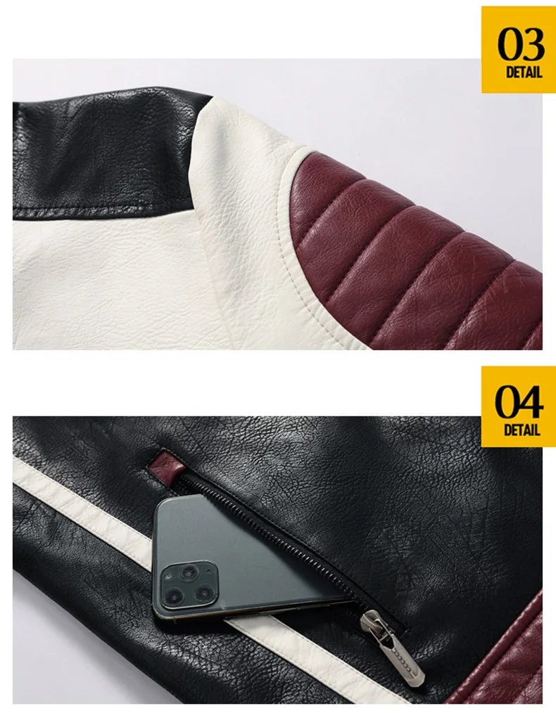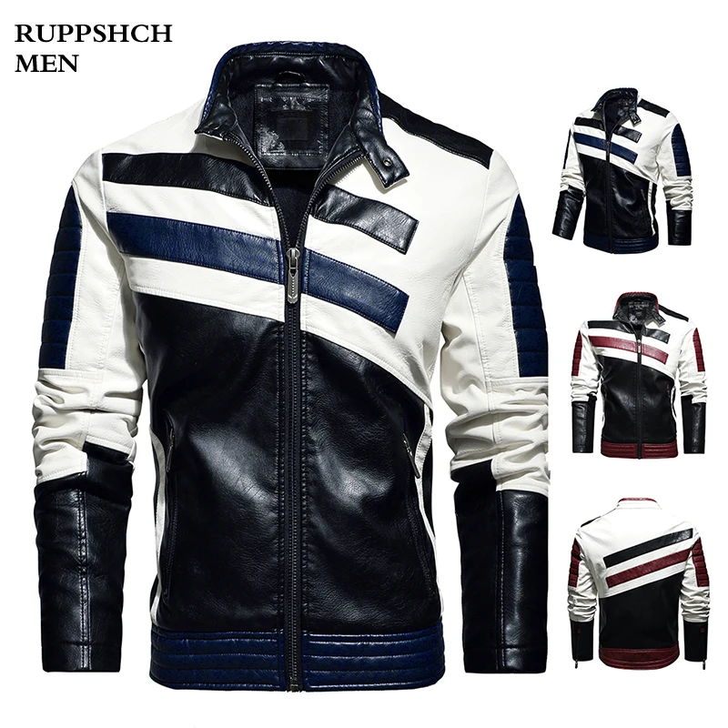 Мужская осенняя куртка из ПУ кожи, лоскутный дизайн, зимняя флисова...