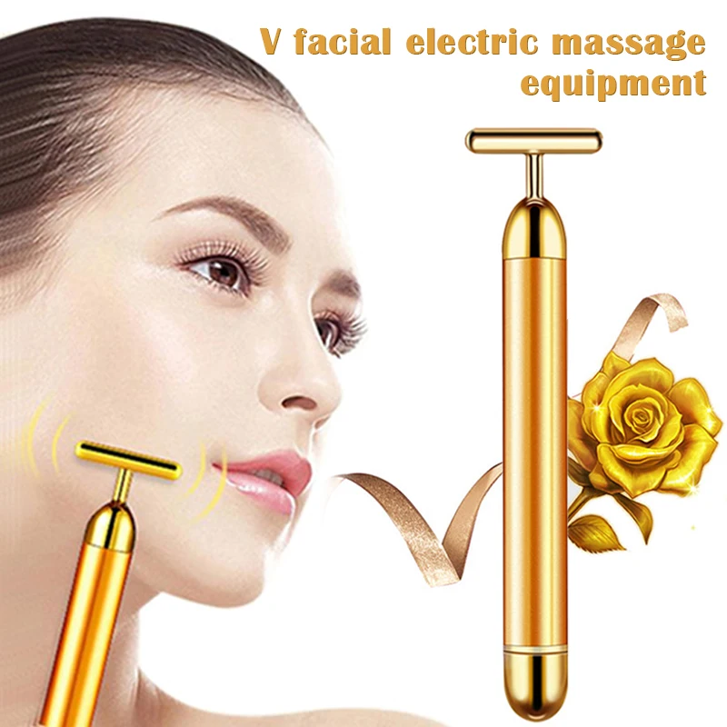 Электрический импульсный массажер для лица, 24k, Т-образный, для подтяжки и ежедневного ухода за кожей MH88