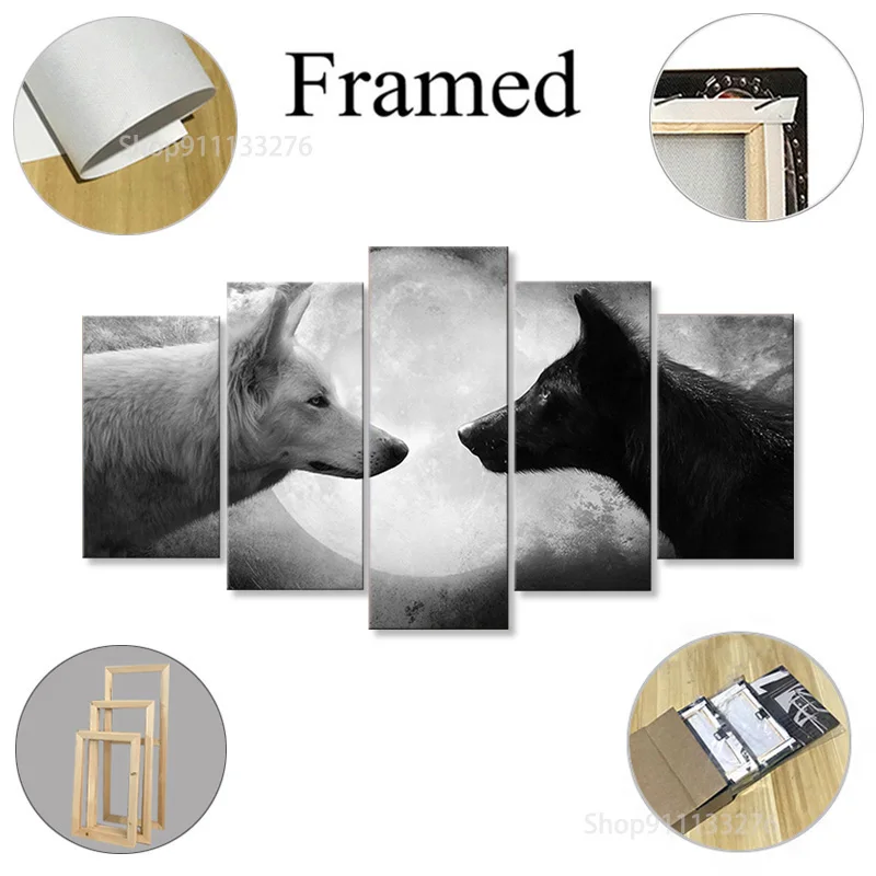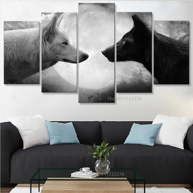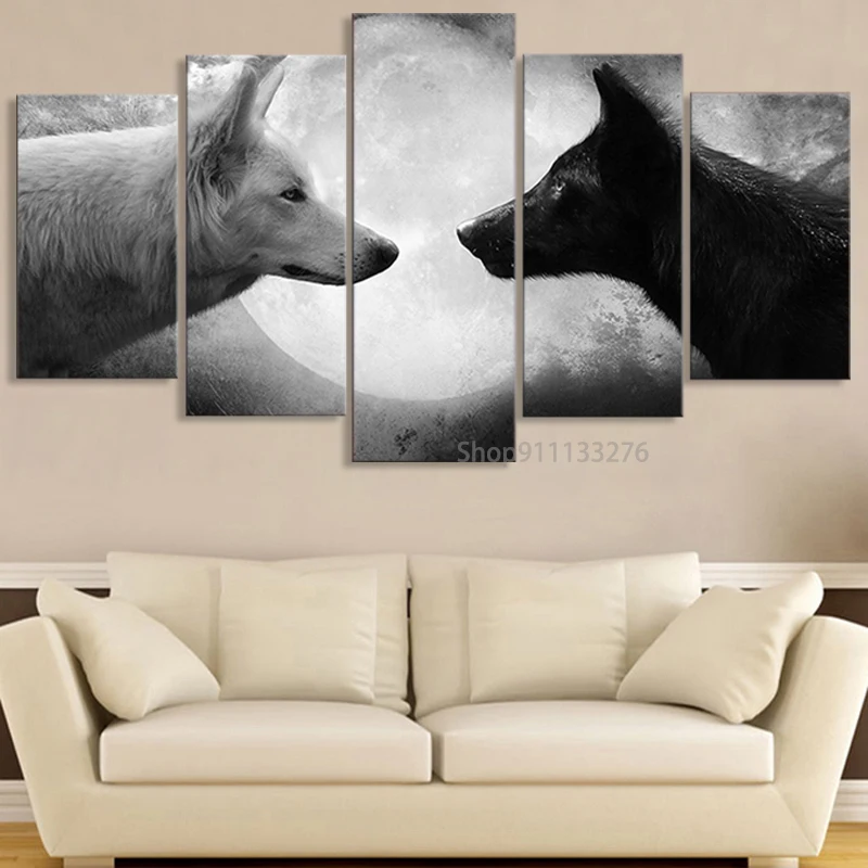 Постер "Волк" HD печать 5 шт. Холст Искусство Черный волк белый волк искусство на стене картины для гостиной рамки