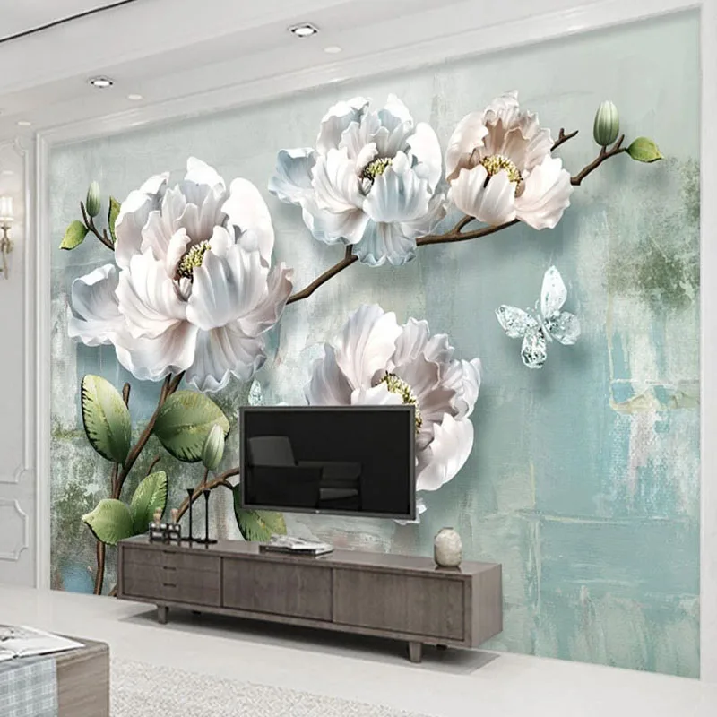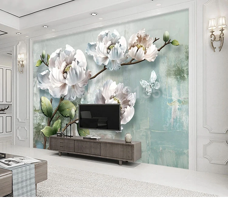 Настенные росписи на заказ, 3D стереоскопические белые цветы для сп...