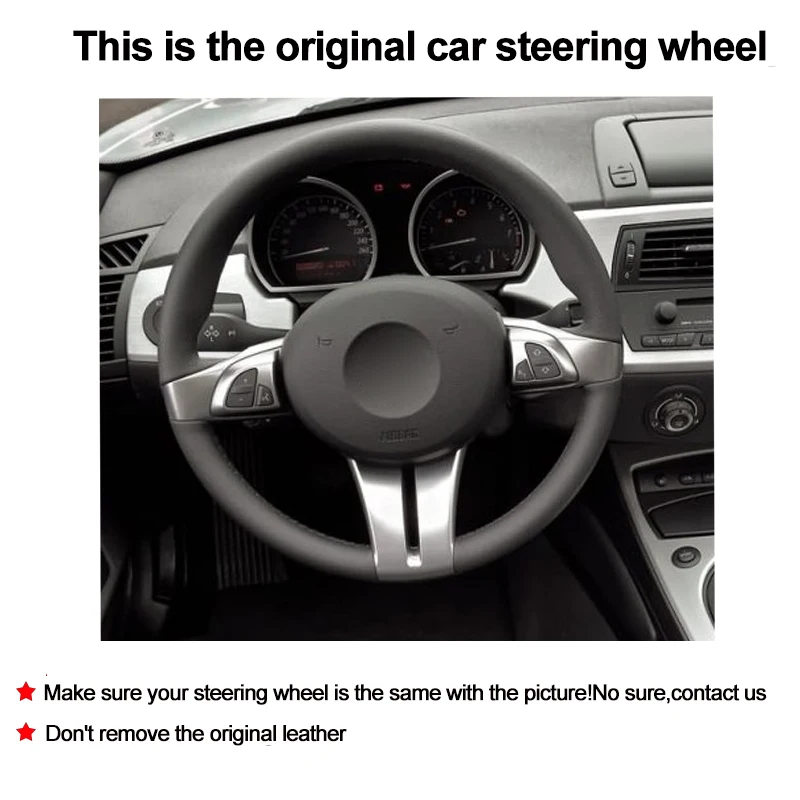 Ручное шитье чехол рулевого колеса автомобиля Обёрточная бумага черная замша г BMW Z4 E85 (Roadster) 2003 2004 2006-2008 E86 (купе) 2005 -2007 2008