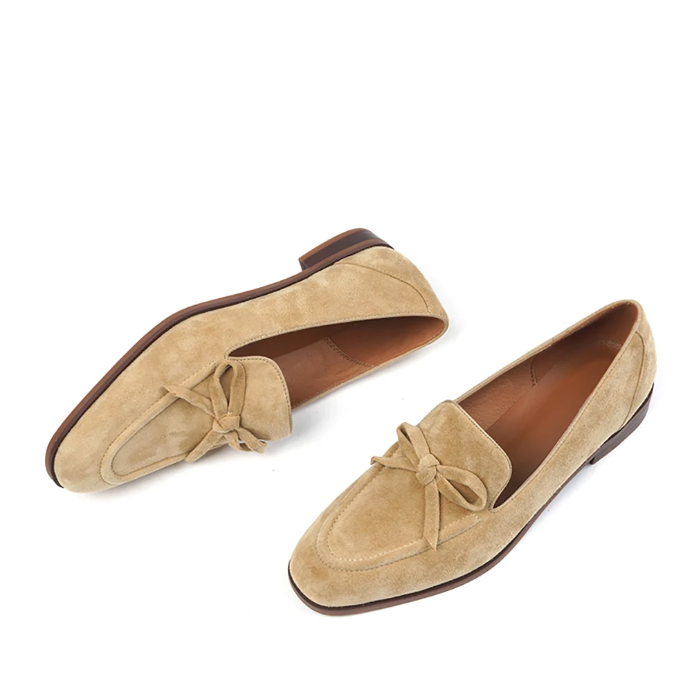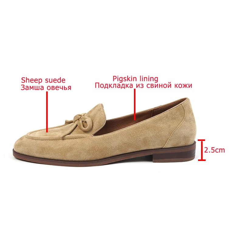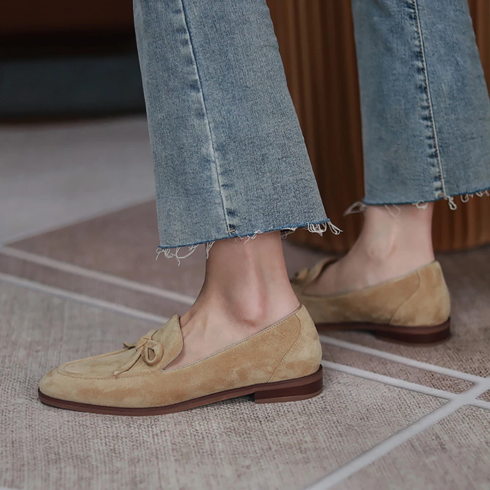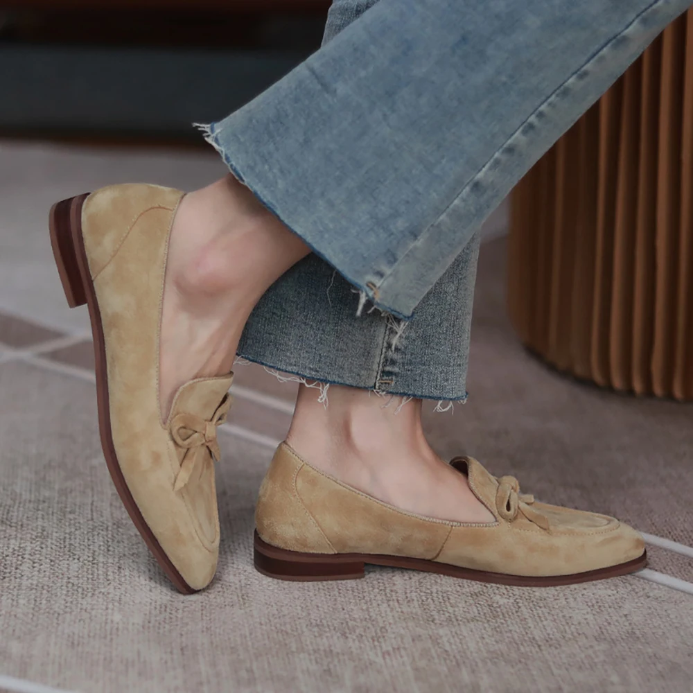 Женские весенне-осенние замшевые лоферы ISNOM, слипоны из натуральной кожи с узлом-бабочсветильник, балетки на плоской подошве, Мокасины, обувь LU125