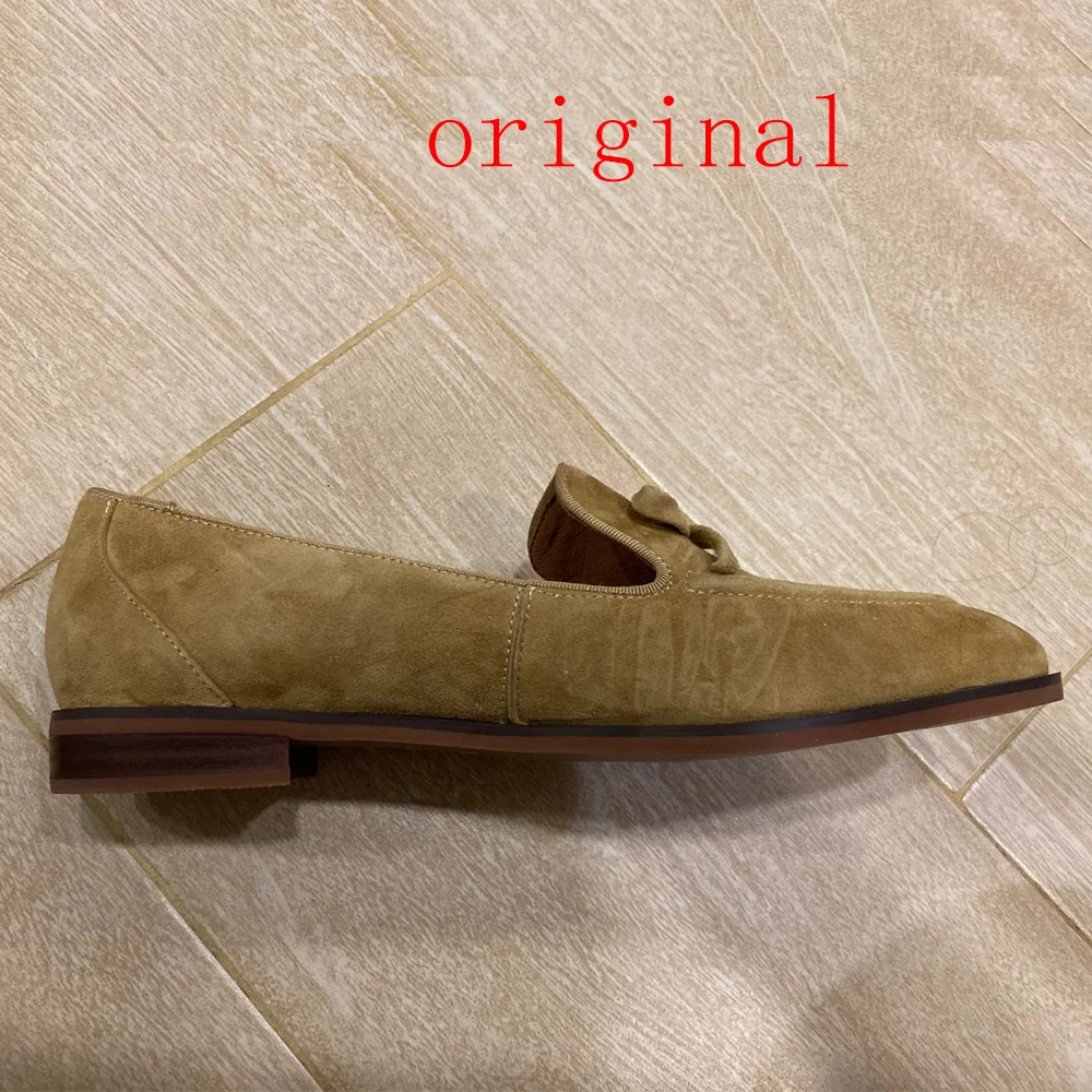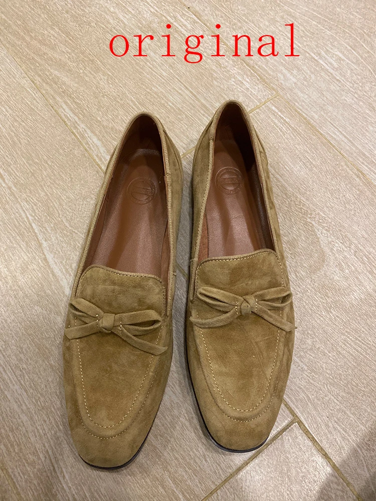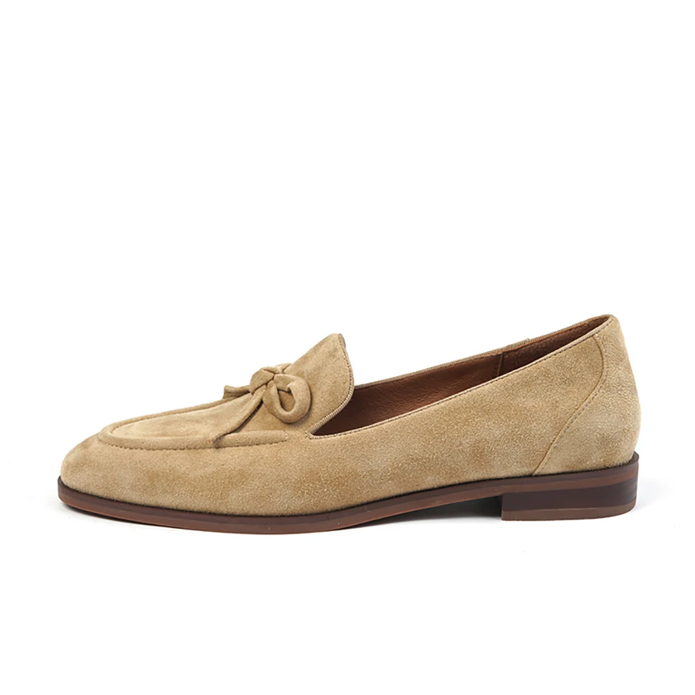 Женские весенне-осенние замшевые лоферы ISNOM, слипоны из натуральной кожи с узлом-бабочсветильник, балетки на плоской подошве, Мокасины, обувь LU125