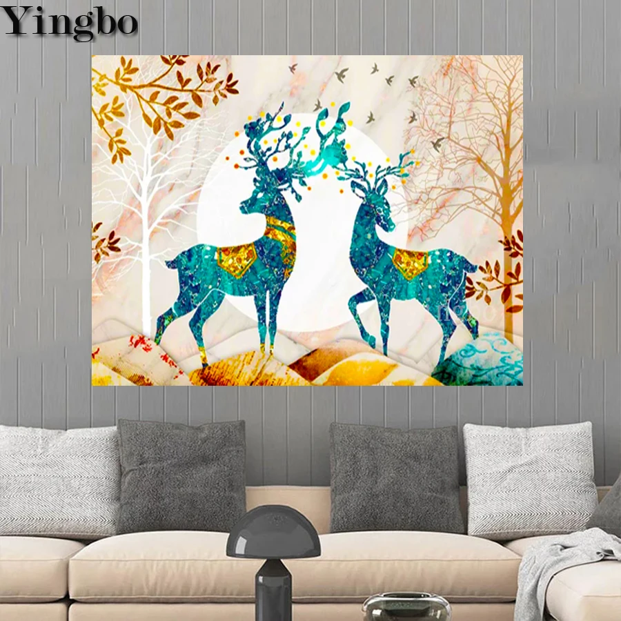 5D DIY Алмазная Картина абстрактный Золотой олень дерево Луна полный квадратный круглый дрель мозаика Алмазная вышивка головоломка украшение дома