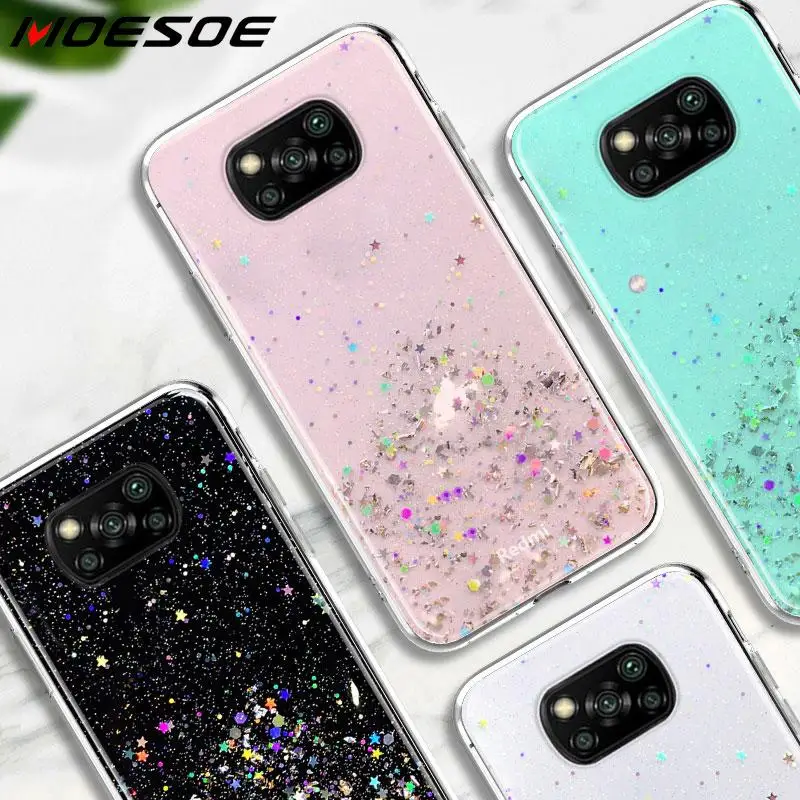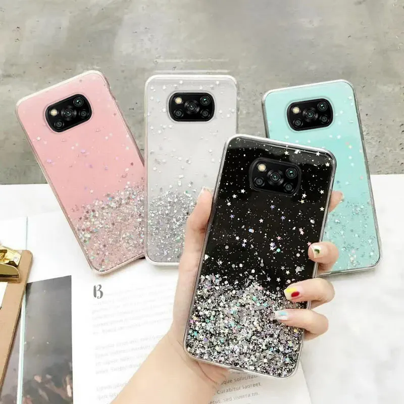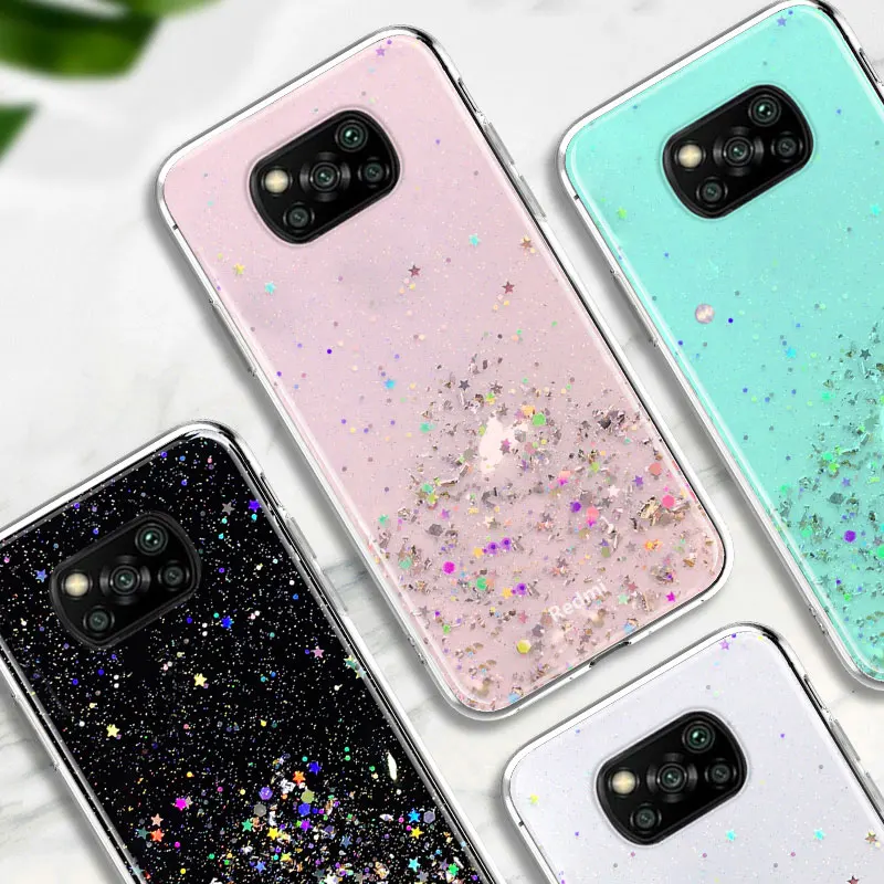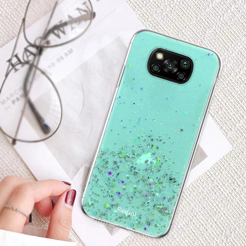 Чехол для Xiaomi Poco X3 NFC M3 F3 Mi 10T Lite 11 Ultra Redmi Note 10 9 8 Pro 9s 8T 9T, силиконовый прозрачный мягкий чехол с блестками