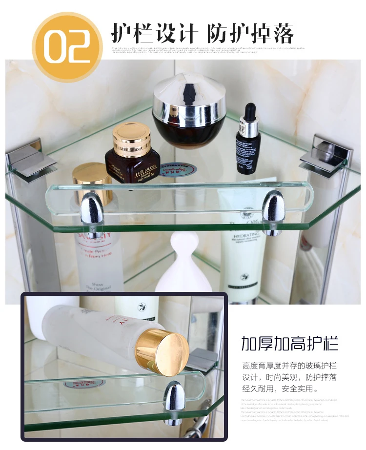 Стеклянная настенная полка в европейском стиле из нержавеющей стали, угловая полка для ванной LO5191034