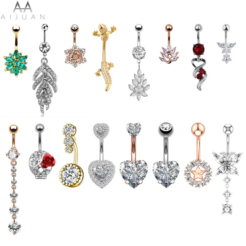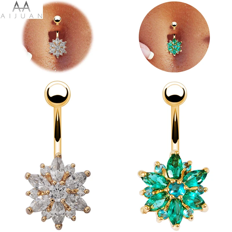 Цветок пупок кольца для женщин модная Девичья обувь на высоком каблуке с сердечком пупка кольца 316L хирургической нержавеющей стали CZ с украшением в виде кристаллов с цирконием, ювелирное изделие для тела,