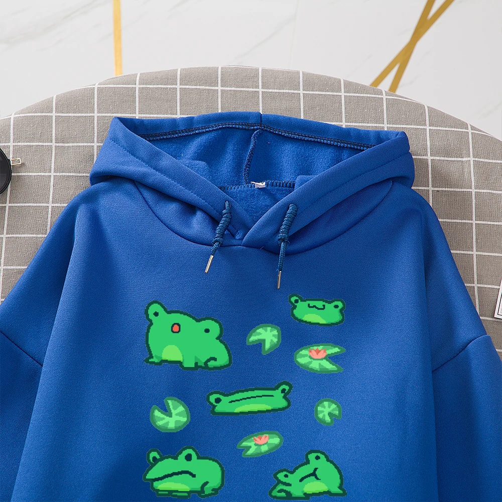 Милые толстовки для девочек-подростков, толстовка большого размера с капюшоном, Женская флисовая толстовка с капюшоном, толстовка, Женский свитшот с забавным принтом лягушки