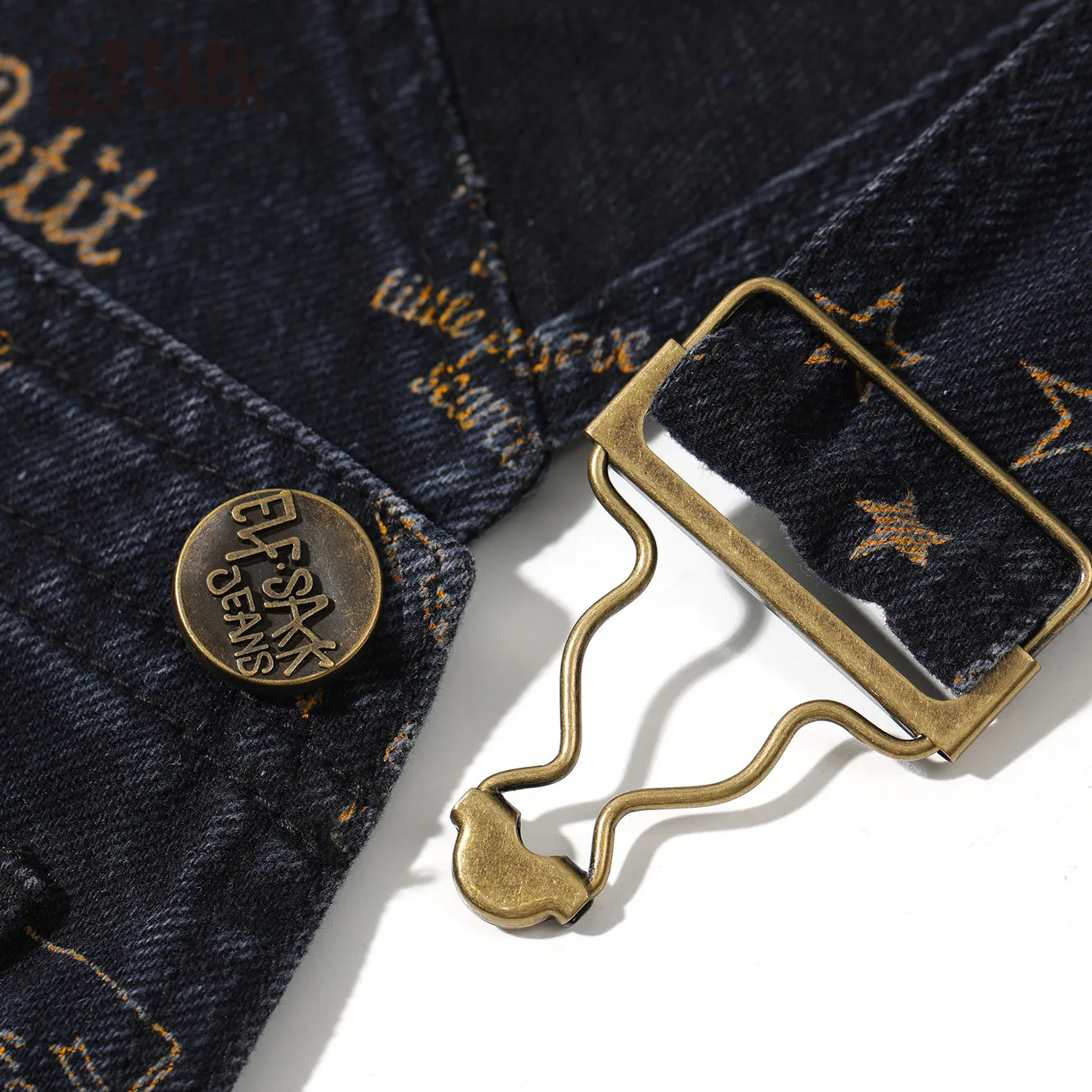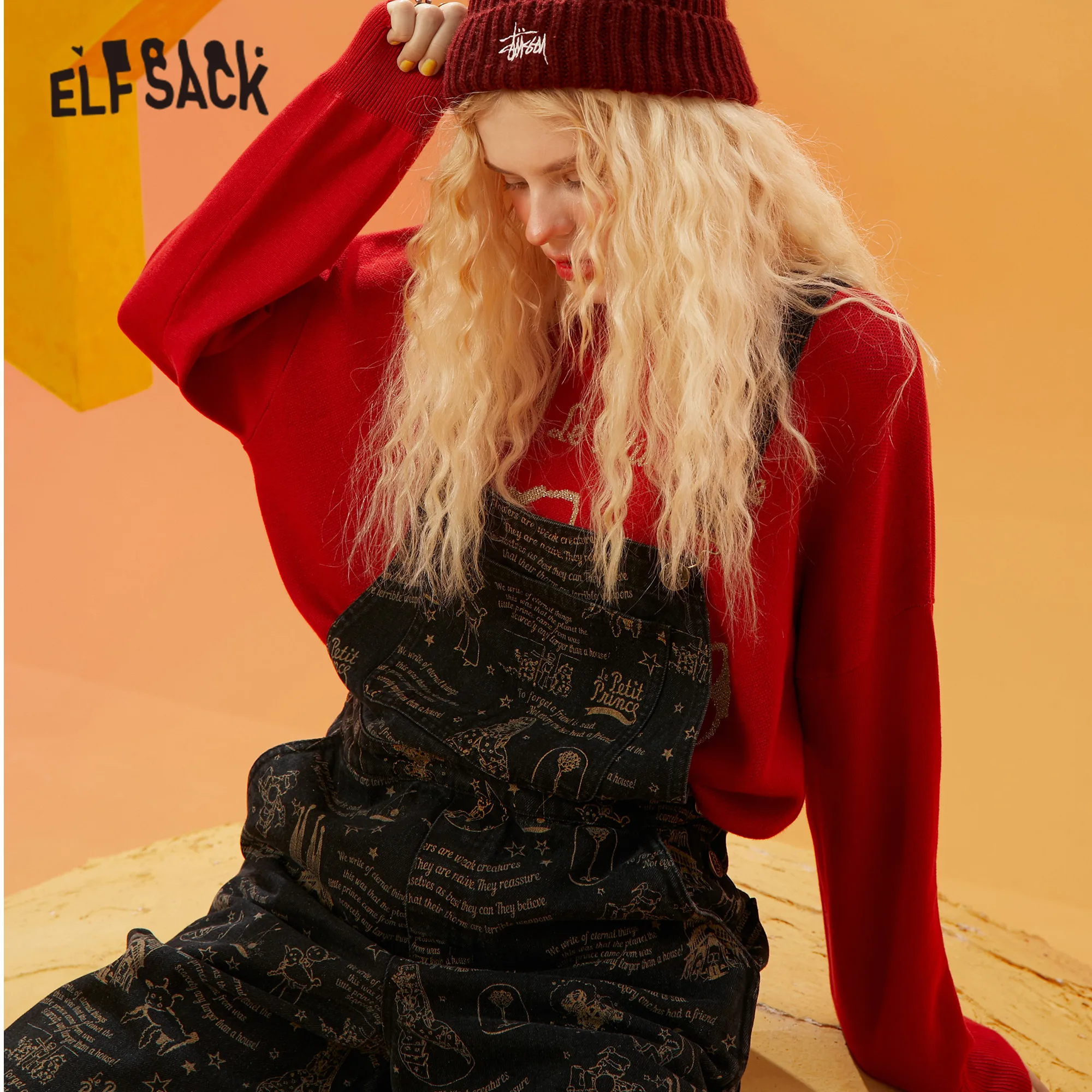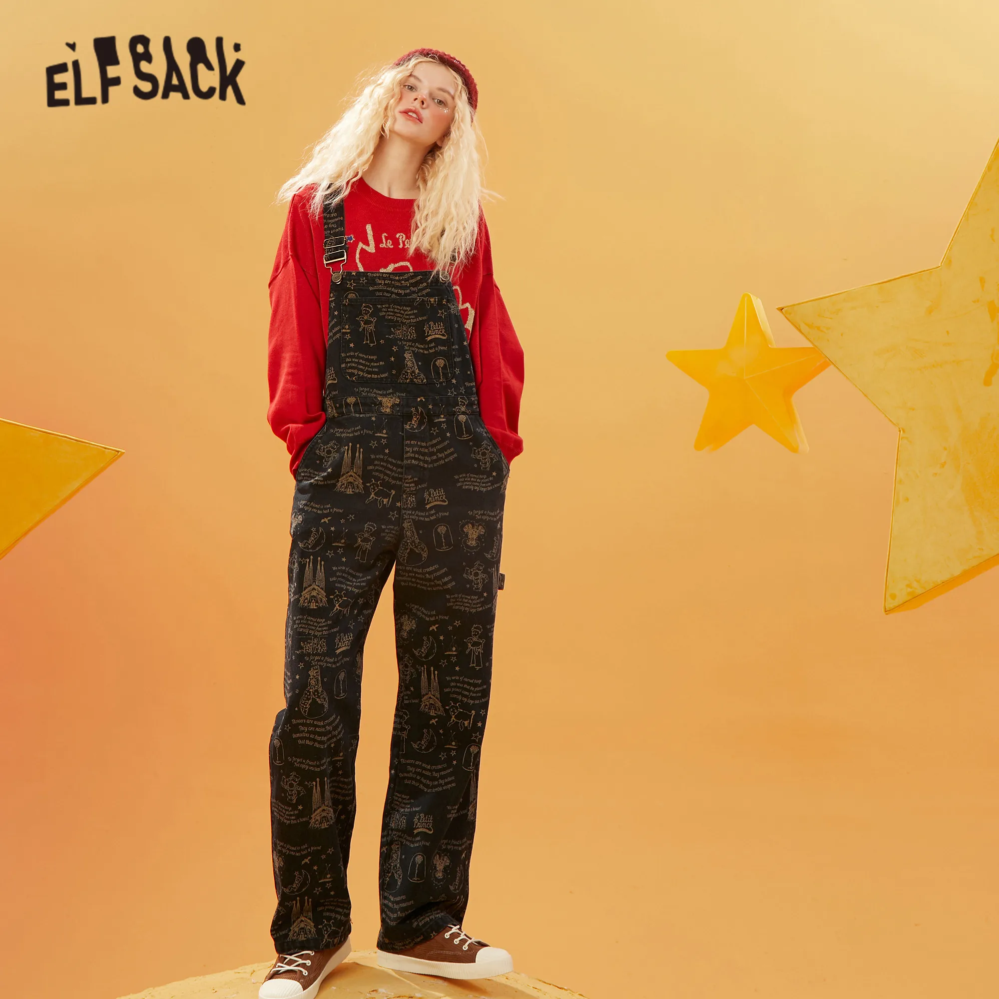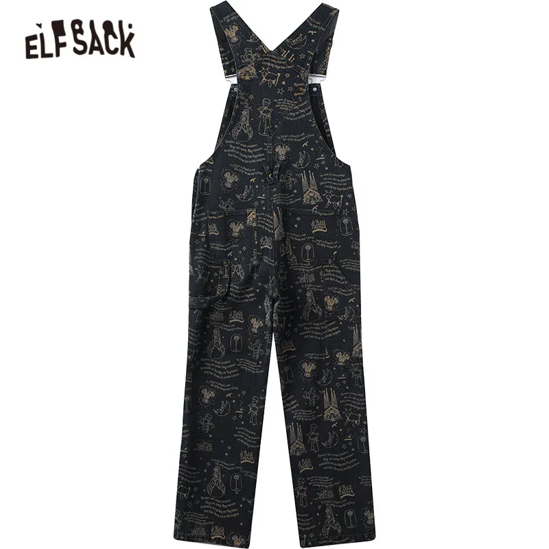 Женский джинсовый комбинезон ELFSACK, повседневный комбинезон с мультяшным принтом, винтажные Прямые корейские женские Комбинезоны на зиму 2020