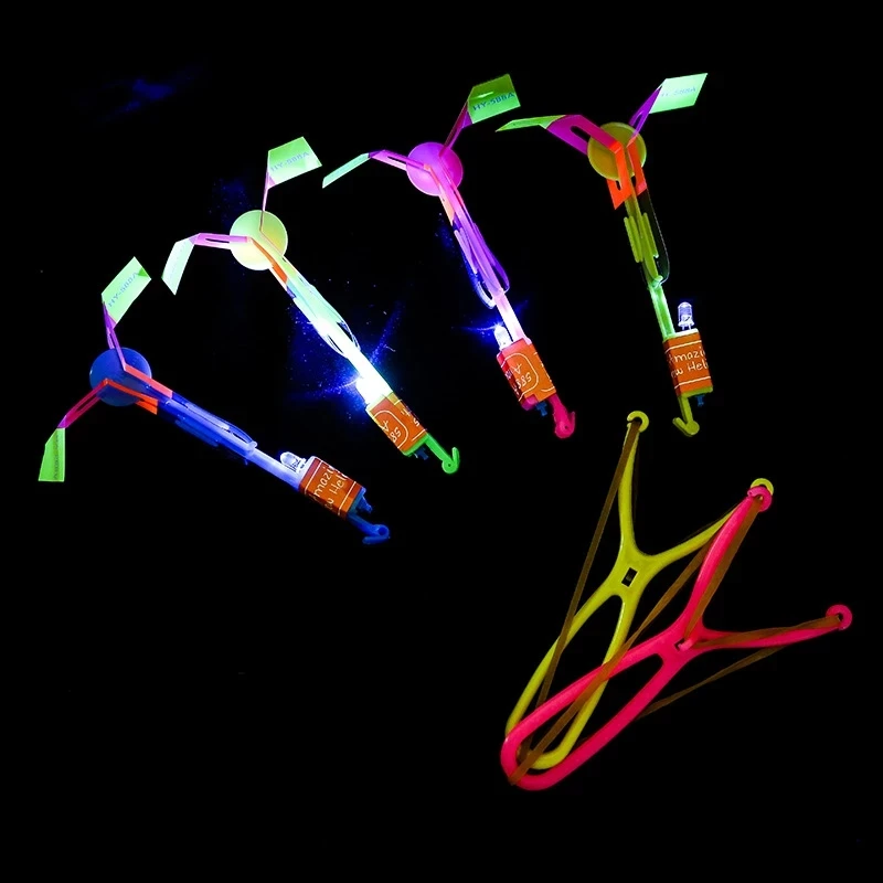 5 шт.компл. уличная светящаяся ракета светодиодная Рогатка эластичный вертолет вращающаяся летающая игрушка стрела Подарок детская сказочная катапульта