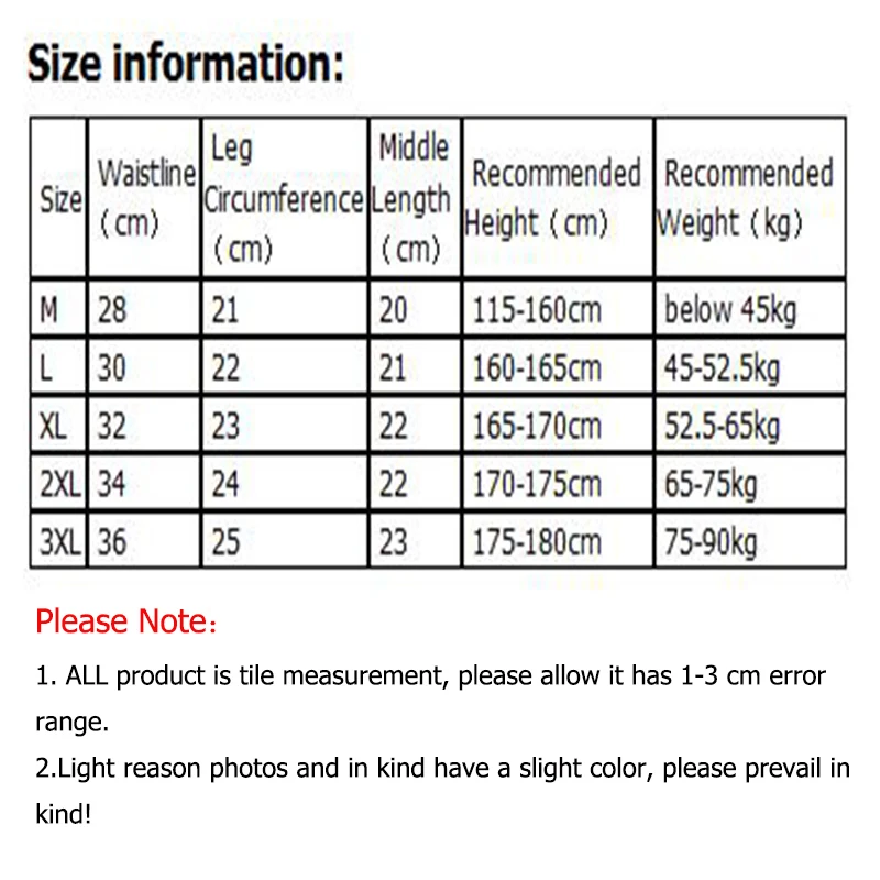 РазмерыТалия (см)Окружность ноги (см)Средняя длина (см)Рекомендуемая высота (см)Рекомендуемый вес (кг)М282120115-160 смНиже 45 кгL302221160-165 см45-52,5 кгXL322322165-170 см52,5-65 кг2XL342422170-175 см65-75 кг3XL362523175-180 см75-90 кг Обратите внимание: 1. Все продукты являются измерениями плитки, пожалуйста, учитывайте погрешность в 1-3 см. 2. Пожалуйста, при покупке выбирайте размер в соответствии с таблицей размеров. Если вы не понимаете их, пожалуйста, свяжитесь с нами. Сообщите нам вес и рост ваших детей. Мы поможем вам сделать лучший выбор. 3. Светильник причина фотографии и в натуральной форме, у вас есть s светильник цвет, просим отнестись к этому с пониманием!