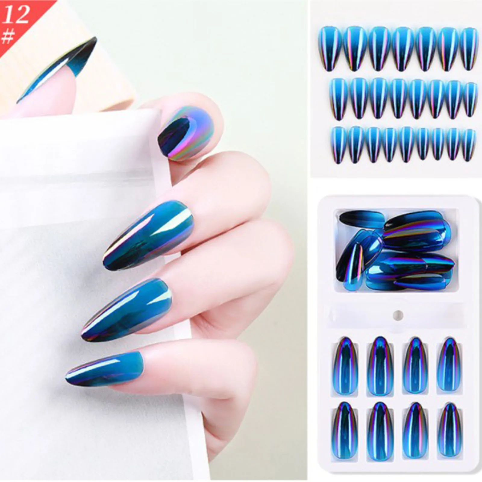 24 шт.компл. полное покрытие, градиентные блестящие накладные ногти на шпильке, Красочный глянцевый съемный инструмент для маникюра с клеем, новинка 2021