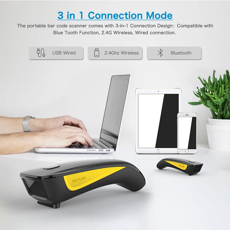 Сканер штрих-кода 2D NETUM C750 с Bluetooth, беспроводной ручной карманный считыватель штрих-кодов QR Data Matrix PDF417 для Мобильных Платежей в магазине