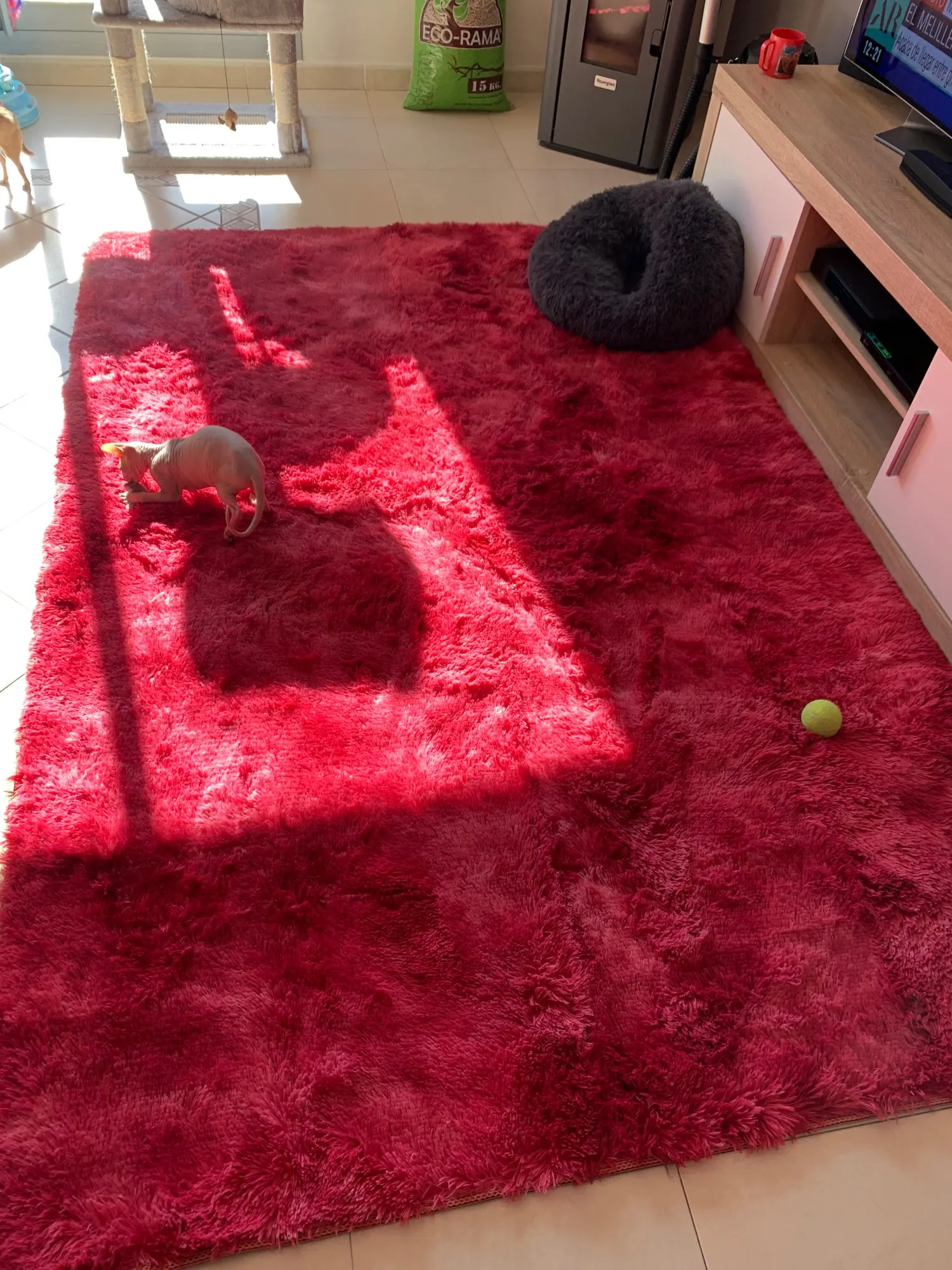 Мы используем ковер в течение 1 месяца, он сильно теряет волосы, у нас есть все дома! В противном случае он прибыл очень быстро и очень мягкий.